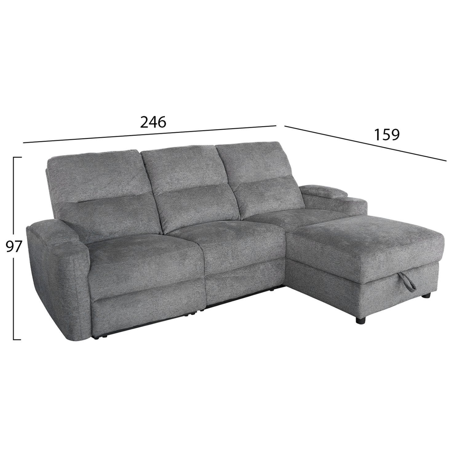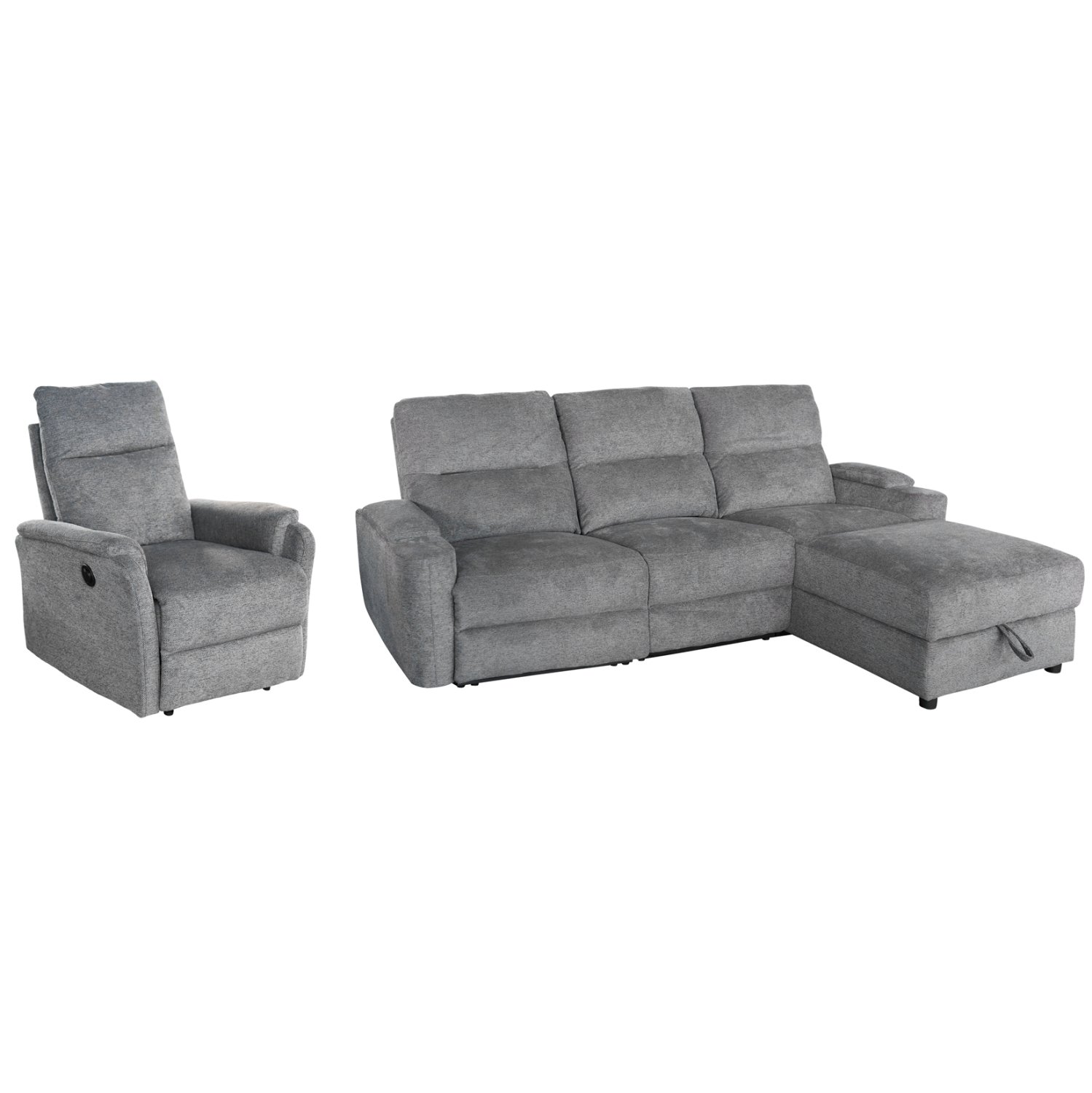 Σετ Καναπέ Δεξιάς Γωνίας με Πολυθρόνα relax SYNTHIA—ΓΚΡΙ Ύφασμα και ηλεκτρική ανάκλιση