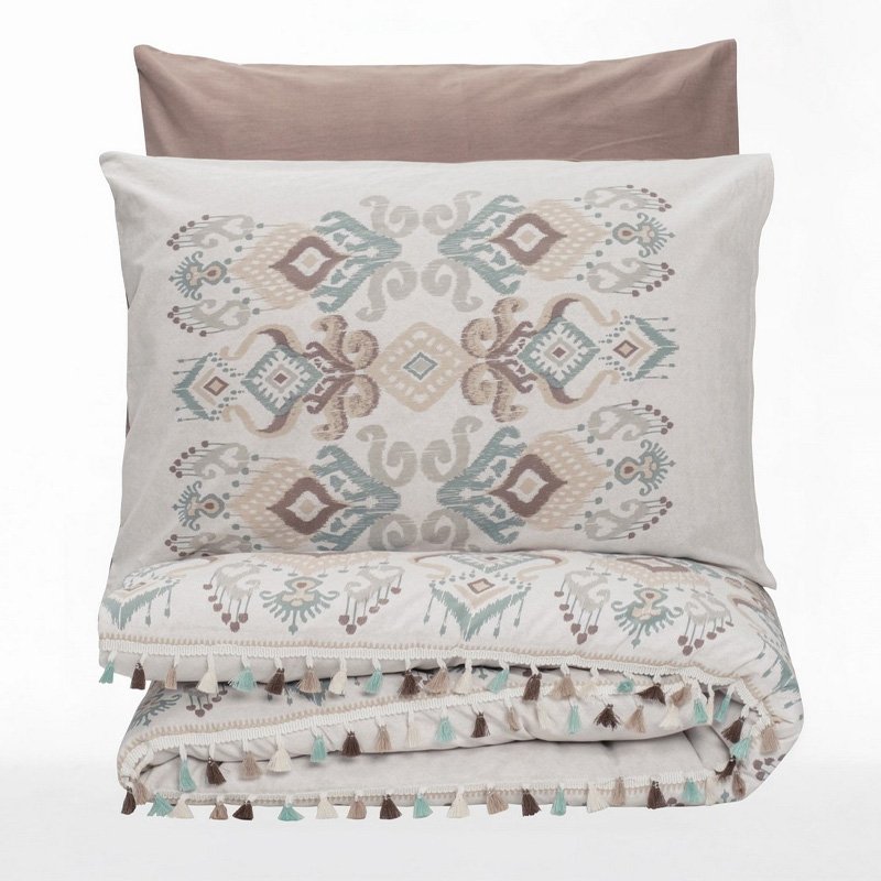 Σετ παπλωματοθήκη Asilo Cotton Box 4 τμχ Διπλή (200×220) χρώμα καφέ – λευκό