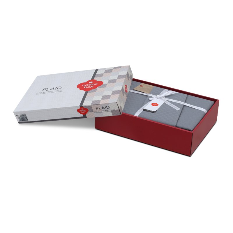 Σετ παπλωματοθήκη Plaid Cotton Box 3 τμχ Μονή (160×220) χρώμα γκρι