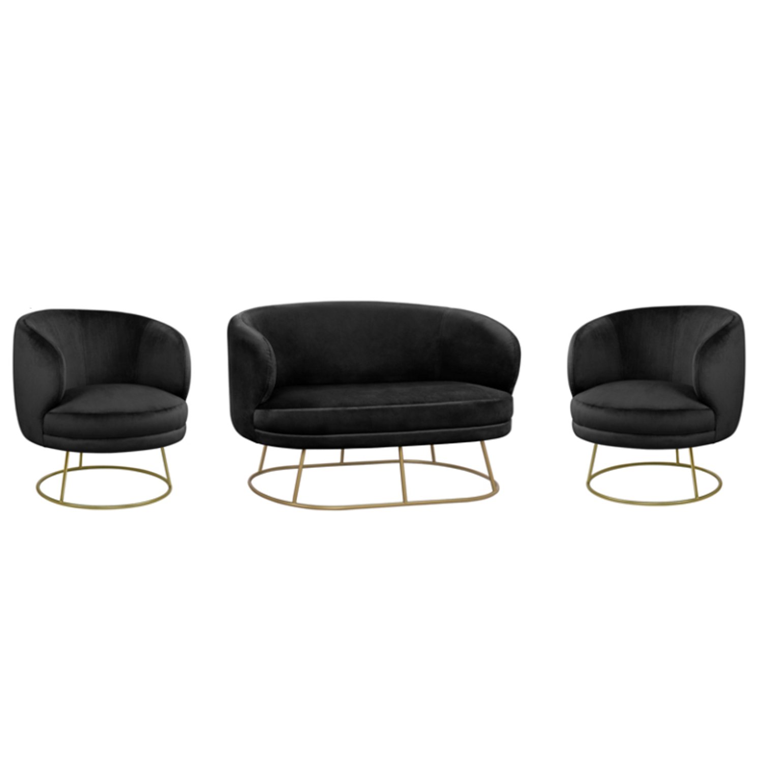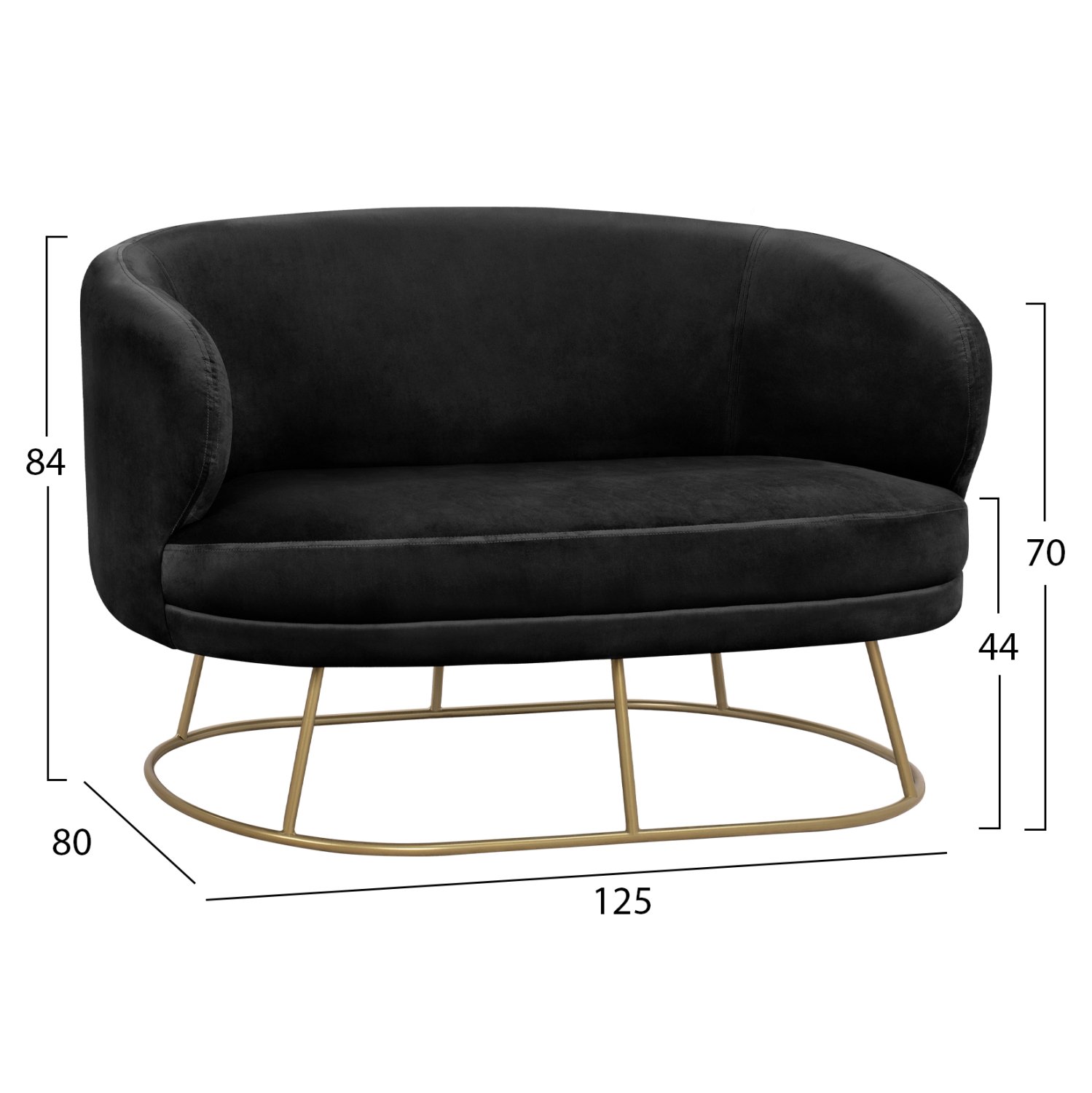 Καναπές διθέσιος ARIEN σε ΜΑΥΡΟ χρώμα με χρυσή μεταλλική βάση.