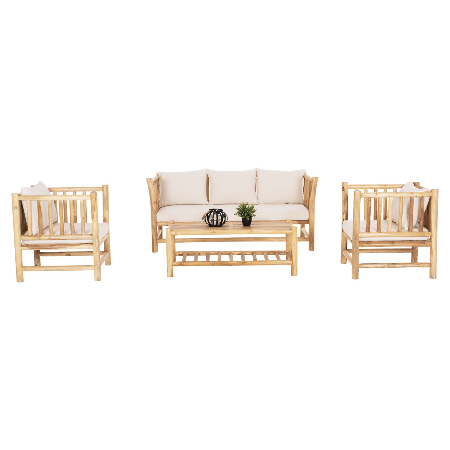 ΣΕΤ ΣΑΛΟΝΙ 4ΤΜΧ EDDARD HM9340 ΑΠΟ ΜΑΣΙΦ ΞΥΛΟ TEAK ΦΥΣΙΚΟ – ΛΕΥΚΟ