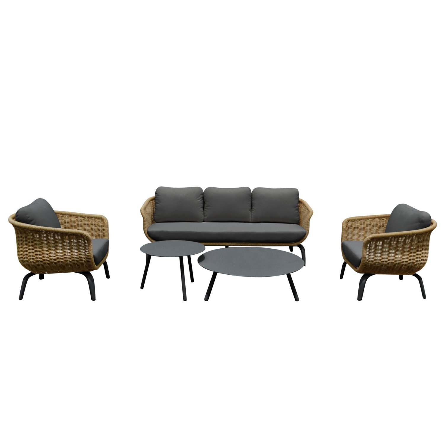 Σετ Σαλόνι Εξωτερικού Χώρου STERN 5 Τεμαχίων με Wicker & Αλουμίνιο – Καναπές, Πολυθρόνες & Τραπεζάκια—ΓΚΡΙ / ΦΥΣΙΚΟ