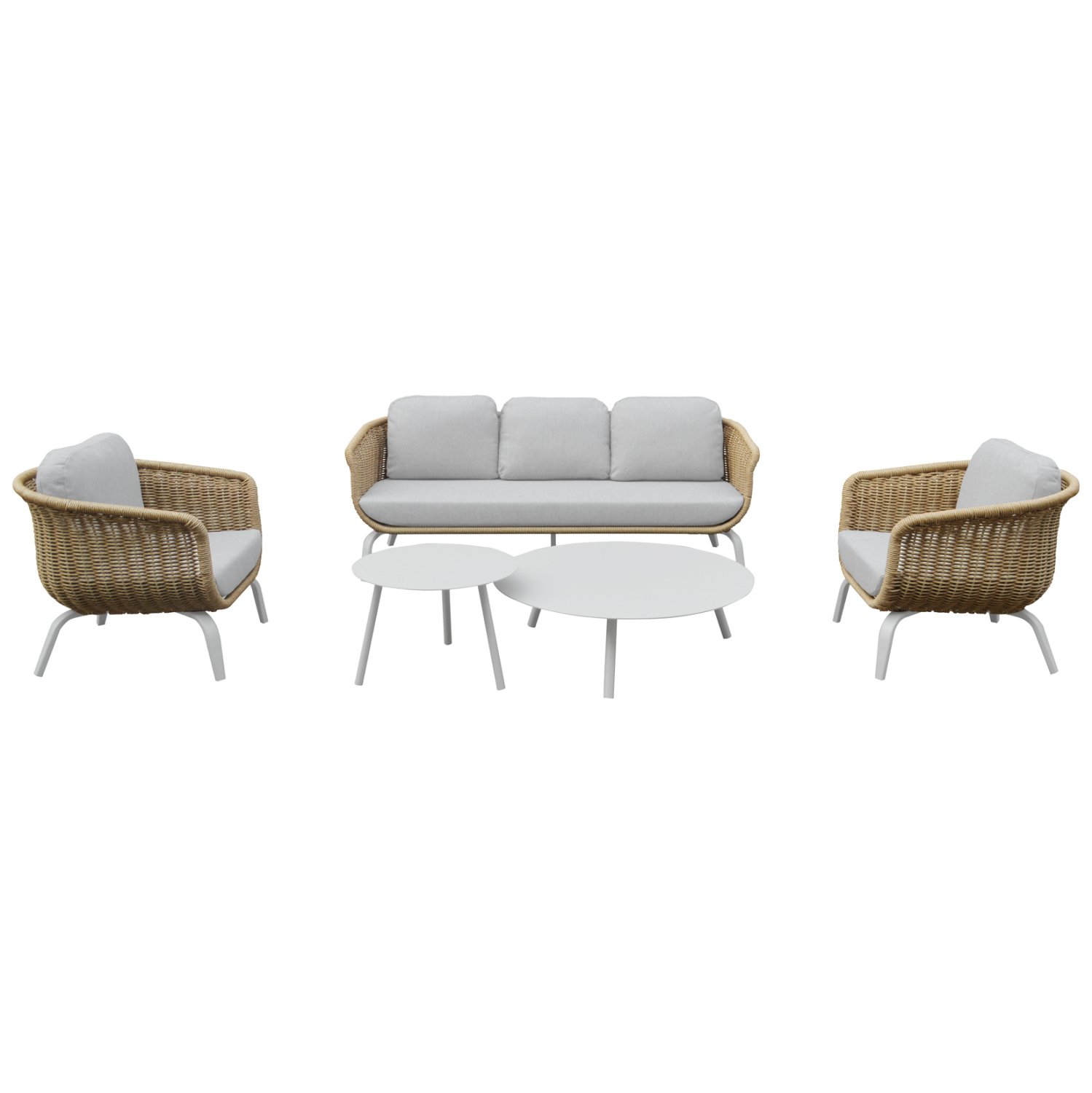 Σετ Σαλόνι Εξωτερικού Χώρου STERN 5 Τεμαχίων με Wicker & Αλουμίνιο – Καναπές, Πολυθρόνες & Τραπεζάκια—ΑΝΟΙΧΤΟ ΜΠΕΖ / ΦΥΣΙΚΟ