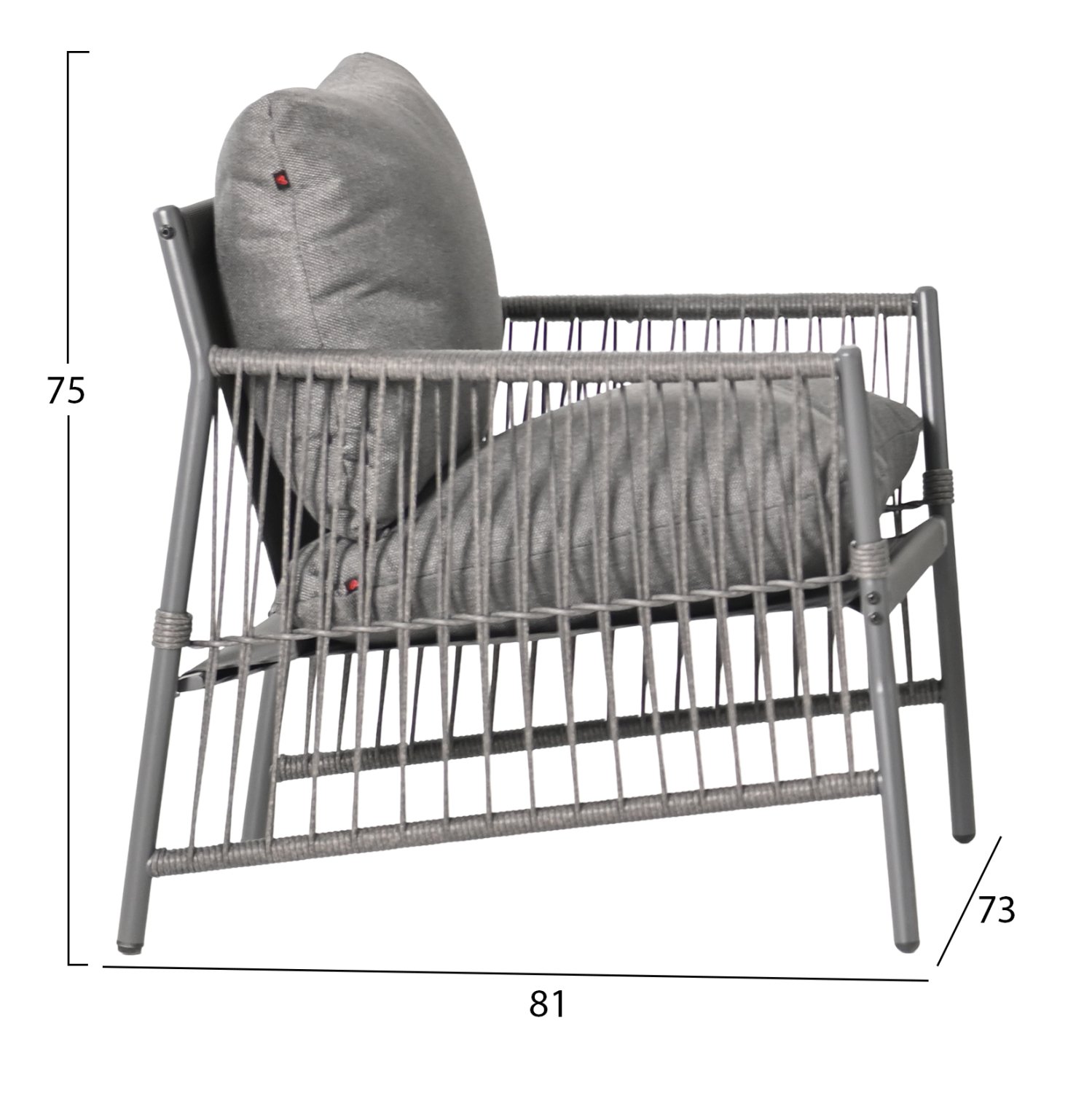 ΣΕΤ ΣΑΛΟΝΙ ΕΞ.ΧΩΡΟΥ 4 ΘΕΣΕΩΝ DEANDRA HM6507.01 ΜΕΤΑΛΛΟ & ΜΑΞΙΛΑΡΙΑ ΣΕ ΓΚΡΙ