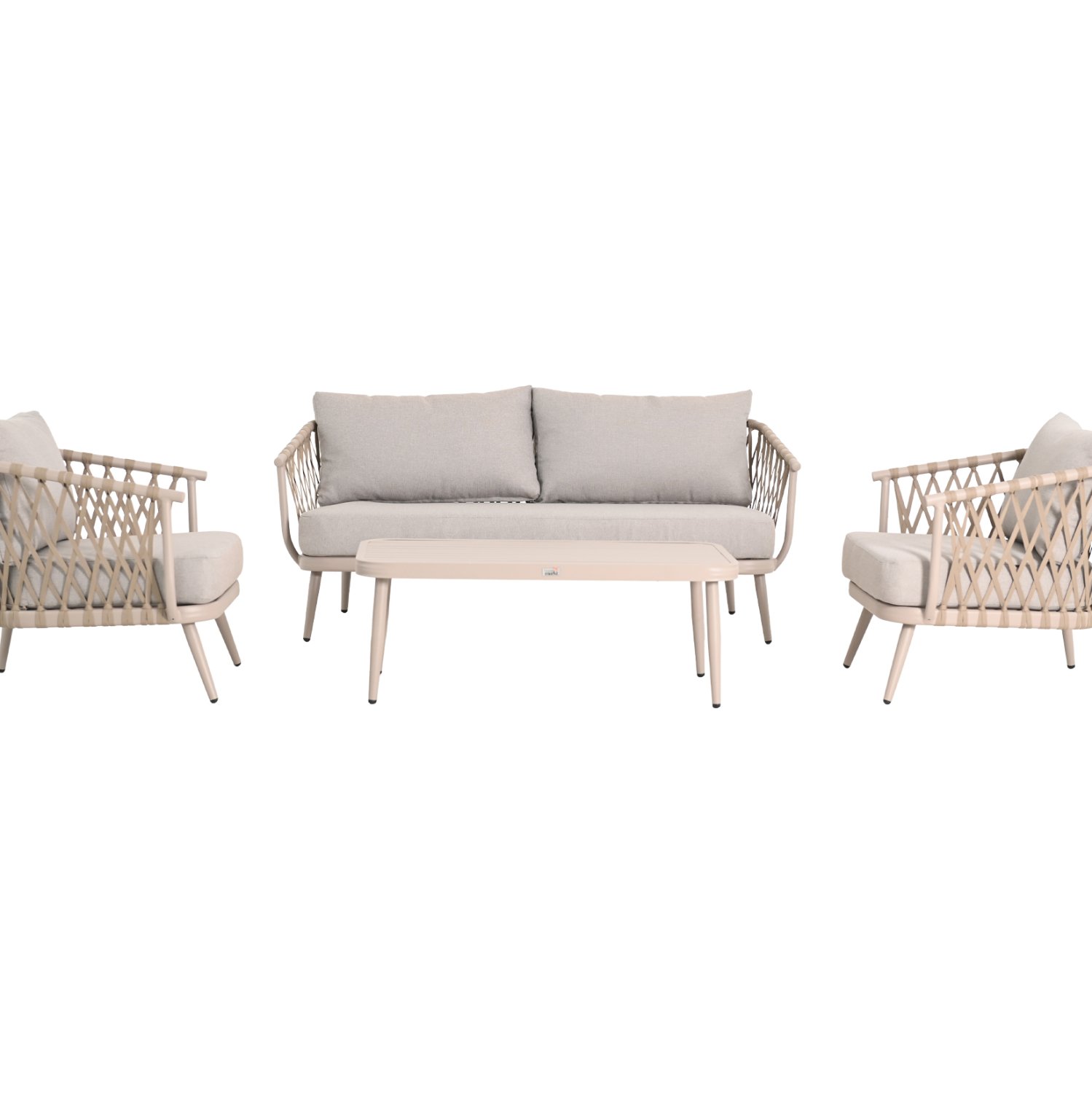 Το WILLA είναι ένα υπέροχο σετ εξωτερικού χώρου που συνδυάζει σύγχρονη αισθητική με ανθεκτικά υλικά υψηλών προδιαγραφών. Ο ελαφρύς σκελετός από αλουμίνιο σε ΜΠΕΖ απόχρωση προσφέρει αυξημένη αντοχή στη διάβρωση και σταθερότητα, ενώ η επένδυση με σχοινί στο ίδιο χρώμα χαρίζει φυσική υφή και διαχρονική κομψότητα.