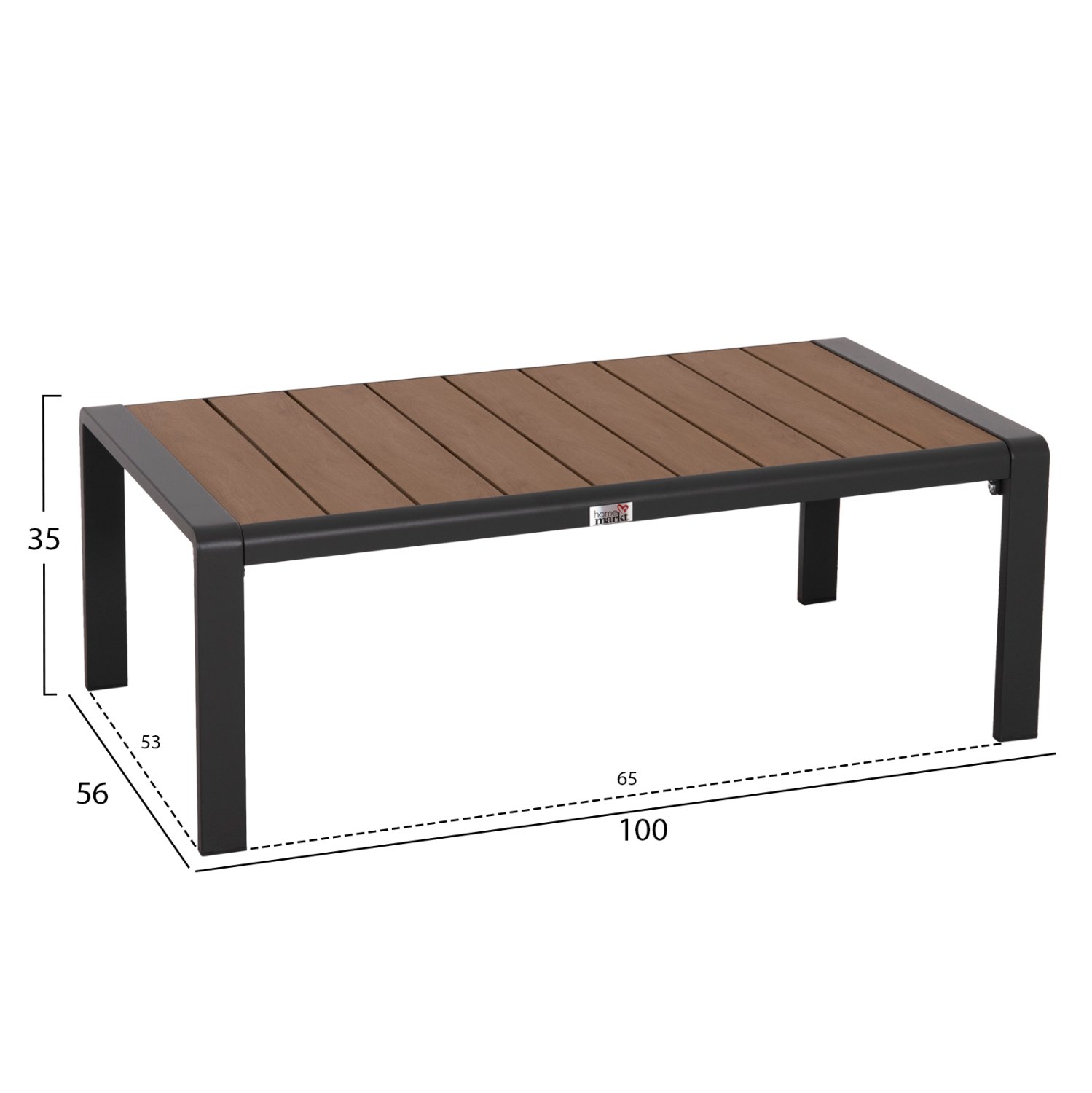 Το σετ σαλόνι εξωτερικού χώρου SAFIΝ αποτελείται από έναν 2-θέσιο καναπέ, 2 αναπαυτικές πολυθρόνες, και ένα ορθογώνιο τραπεζάκι. Το ΣΚΟΥΡΟ ΓΚΡΙ χρώμα στον σκελετό αλουμινίου αλλά και στο olefin ύφασμα των μαξιλαριών είναι επιβλητικό και αποπνέει στιβαρότητα και πολυτέλεια. Το τραπεζάκι πέρα από τον σκελετό αλουμινίου, διαθέτει επιφάνεια από πλάκες polywood που ταιριάζουν απόλυτα με το υπόλοιπο σετ και είναι φυσικά ένα υλικό κατάλληλο για χρήση σε εξωτερικούς χώρους.
