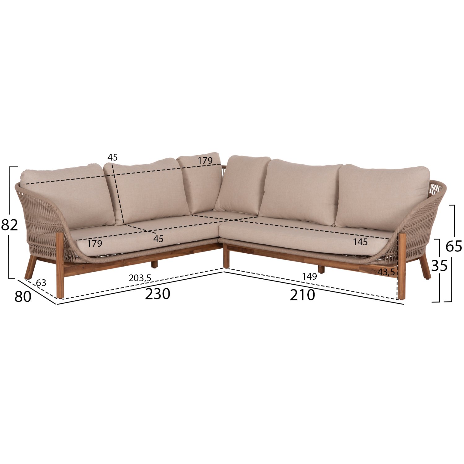Σας παρουσιάζουμε το νέο σετ σαλονιού εξωτερικού χώρου SANJI σε διαμόρφωση γωνίας που αποτελείται από ένα τετράγωνο τραπεζάκι και 2 καναπέδες σε γωνία. Τα πόδια σε όλο το σετ είναι από ποιοτικό ξύλο ακακίας σε ΦΥΣΙΚΟ χρώμα, όπως και ολόκληρο το τραπεζάκι. Ο σκελετός των καθισμάτων είναι από αλουμίνιο επενδυμένος με σχοινί σε ανοιχτό ΜΠΕΖ χρώμα! Τα μαξιλάρια είναι επενδυμένα με πολυεστερικό ύφασμα σε ΜΠΕΖ χρώμα και διαθέτουν γέμισμα με μέτριας σκληρότητας αφρώδη υλικά για την μεγαλύτερη δυνατή άνεση, αλλά και φερμουάρ. Τι άλλο να ζητήσει κανείς για να αναβαθμίσει τον εξωτερικό χώρο του;
