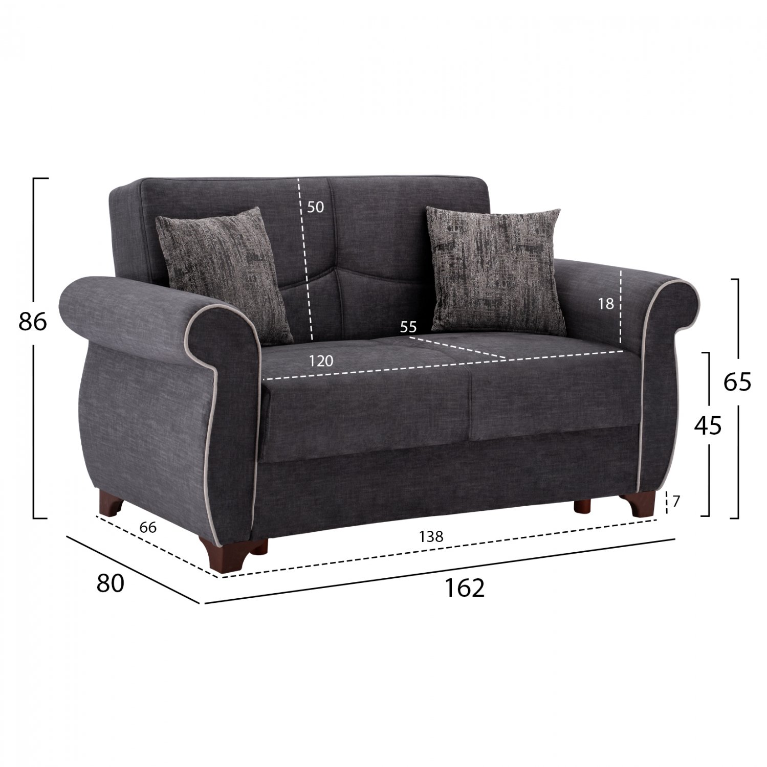 Διαστάσεις 2θέσιου καναπέ: 162x80x86 εκ.