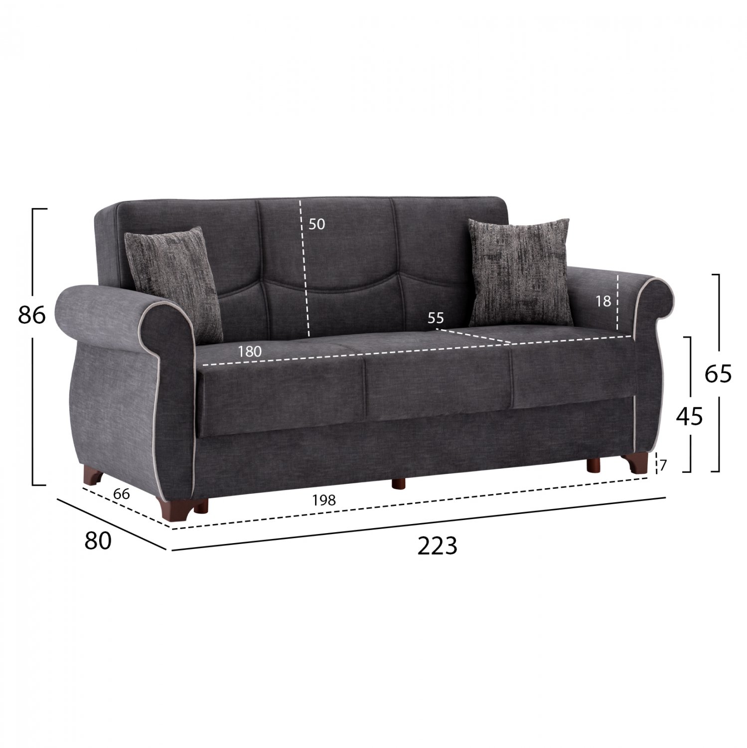 Διαστάσεις 3θέσιου καναπέ: 223x80x86 εκ.