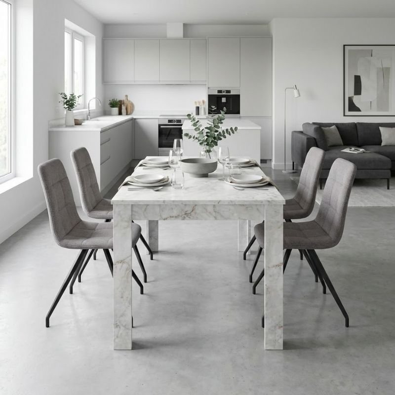 Η τραπεζαρία Darlen – Bianca θα προσθέσει μοντέρνα κομψότητα και άνεση σε κάθε χώρο. Το απαλό ύφασμα της καρέκλας προσφέρει αισθητική άνεσης, ενώ τα στιβαρά, μαύρα μεταλλικά πόδια προσδίδουν μοντέρνα και σταθερή δομή. Είναι ιδανική για την τραπεζαρία ενός μοντέρνου σπιτιού, αλλά και για επαγγελματικούς χώρους όπως καφέ, εστιατόρια ή AirBnB – όπου η λεπτομέρεια και η αισθητική κάνουν τη διαφορά.