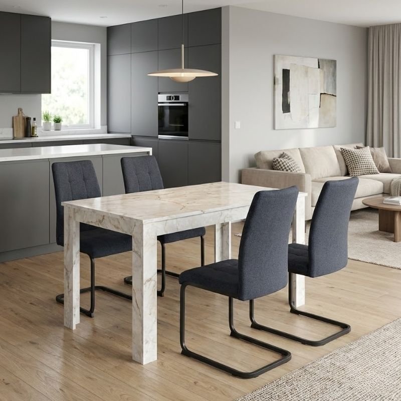 Κάνετε την πρώτη αξιολόγηση για το προϊόν: “Σετ τραπεζαρία 5τμχ Darlen – Laura Megapap χρώμα λευκό εφέ μαρμάρου – ανθρακί 125x72x74εκ.”