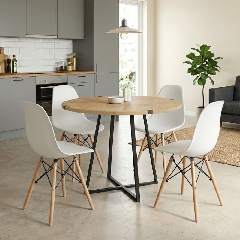 Σετ τραπεζαρία 5τμχ Rubes – Nova Megapap χρώμα φυσικό οξιάς – λευκό Ø100×78εκ.