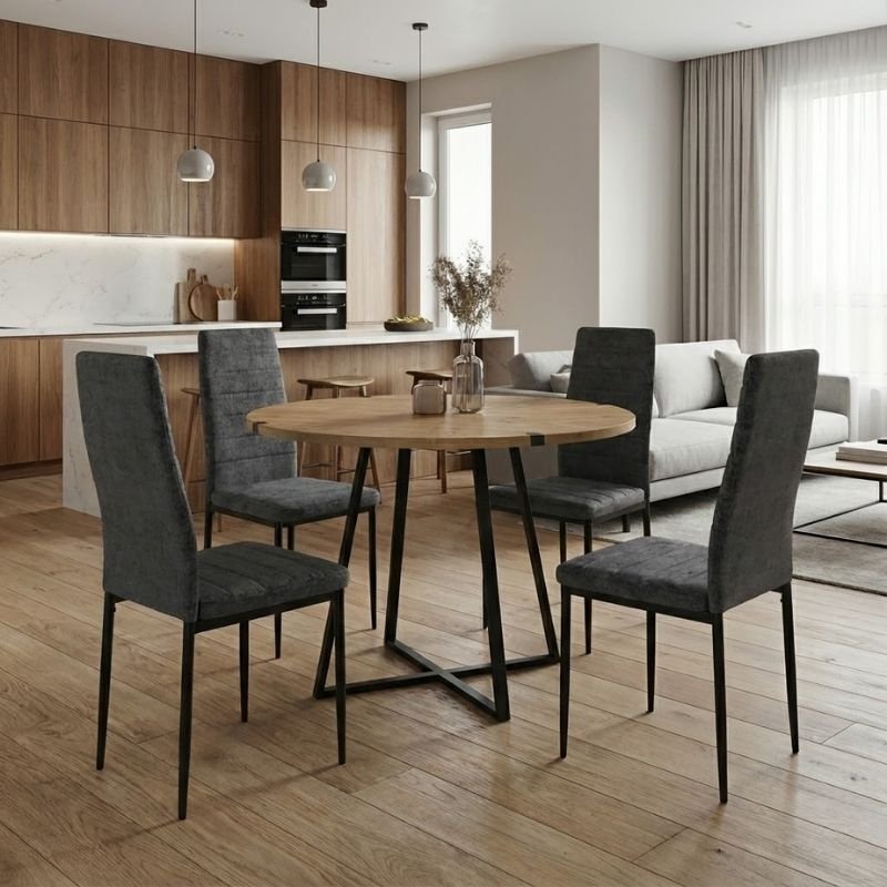 Σετ τραπεζαρία 5τμχ Rubes – Rosa Megapap χρώμα φυσικό οξιάς – γκρι Ø100×78εκ.