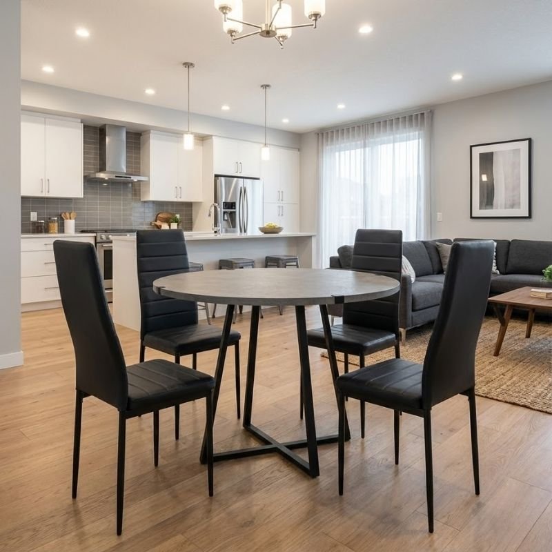 Σετ τραπεζαρία 5τμχ Rubes – Rosa Megapap χρώμα γκρι σκυροδέματος – μαύρο Ø100×78εκ.