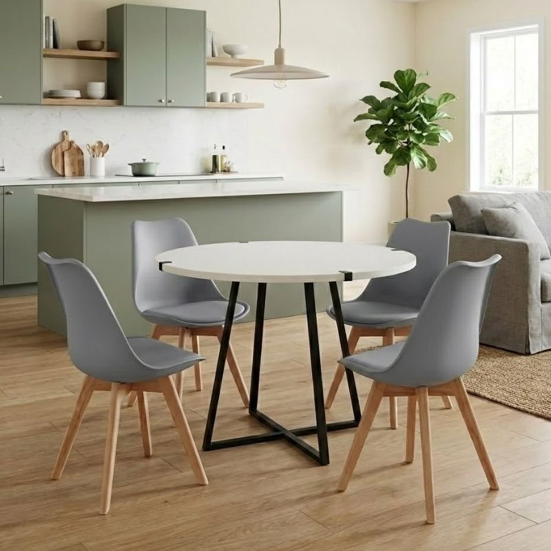 Σετ τραπεζαρία 5τμχ Rubes – Viva Megapap χρώμα λευκό – γκρι Ø100×78εκ.