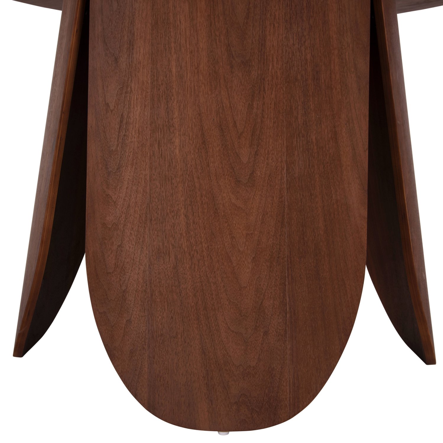Αυτό το σετ τραπεζαρίας εσωτερικού χώρου αποτελείται από ένα τραπέζι DENTY και 4 καρέκλες DELF. Το DENTY είναι ένα στρογγυλό τραπέζι για την τραπεζαρία, με φαλτσοκομμένη επιφάνεια από MDF με καπλαμά δρυός σε ΚΑΡΥΔΙ χρώμα. Η επιφάνεια αυτή στηρίζεται σε μία πανέμορφη ξύλινη κυλινδρική βάση με ίδιο χρωματισμό. Οι καρέκλες DELF έχουν επένδυση με ύφασμα σε ΜΠΕΖ απόχρωση και ΜΑΥΡΑ μεταλλικά πόδια. Αυτό, όμως, που ξεχωρίζει είναι ότι ολόκληρη η πλάτη είναι ξύλινη σε ΚΑΡΥΔΙ χρώμα κι είναι κυρτή και αναπαυτική.