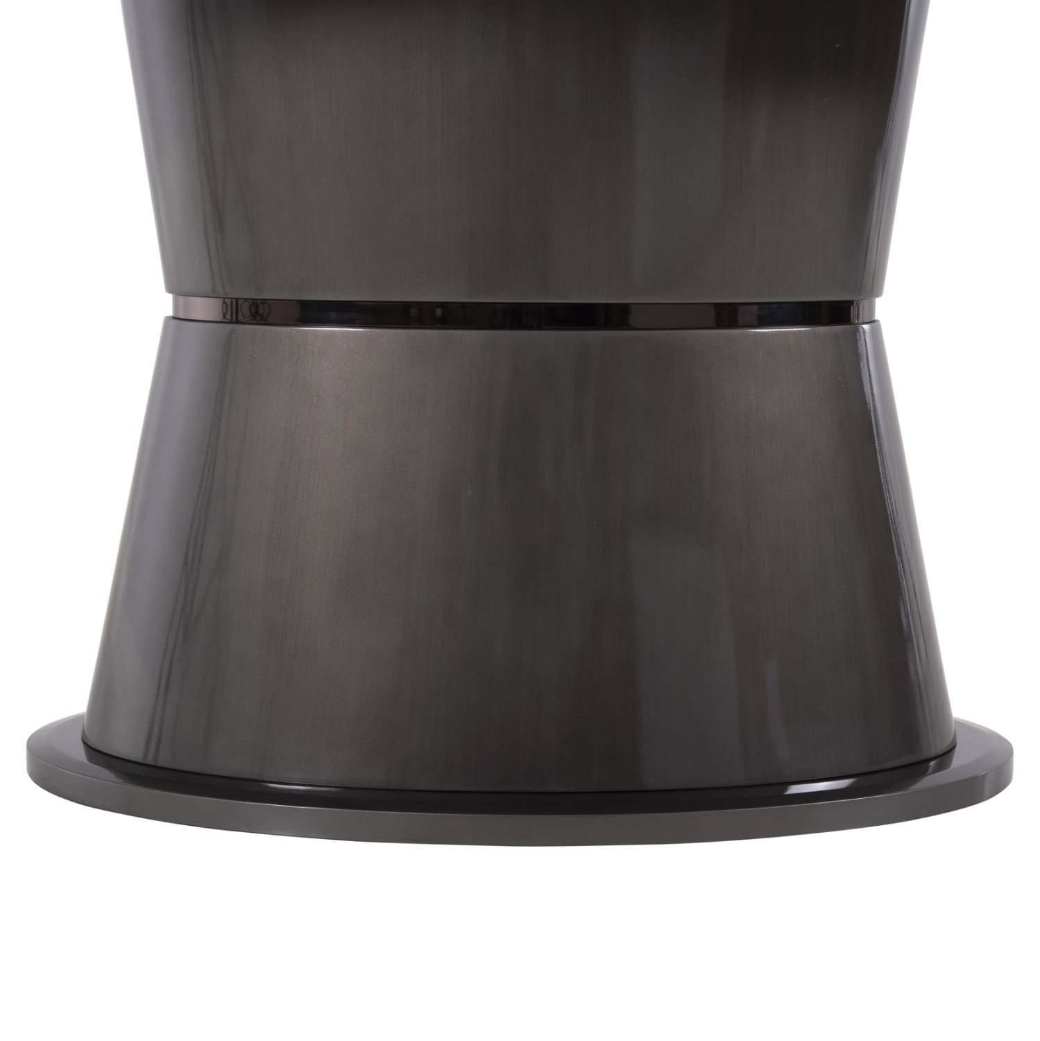Αυτό το σετ τραπεζαρίας εσωτερικού χώρου αποτελείται από ένα τραπέζι BENT και 6 πολυθρόνες WINON. Το BENT είναι ένα μεγάλο τραπέζι τραπεζαρίας με μακρύ οβάλ σχήμα επιφανείας, η οποία στηρίζεται σε μια πανέμορφη οβάλ βάση. Η επιφάνεια είναι κεραμική υψηλής ποιότητας από σχιστόλιθο σε χρωματισμό ΓΚΡΙ ΜΑΡΜΑΡΟΥ, ενώ η βάση είναι σε ΑΝΘΡΑΚΙ χρώμα από MDF. Οι πολυθρόνες WINON σε ΣΚΟΥΡΟ ΓΚΡΙ χρώμα στηρίζονται σε μια μαύρη μεταλλική σαγρέ τετράνυχη βάση στην οποία είναι τοποθετημένος ο πίρος περιστροφής, καθώς το ιδιαίτερο χαρακτηριστικό τους, είναι ότι η περιστρέφονται κατά 180 μοίρες και όχι πλήρως, και διαθέτουν αυτόματη επαναφορά στην αρχική τους θέση. Η επένδυση τους έχει γίνει με υψηλής ποιότητας TEDDY ύφασμα.