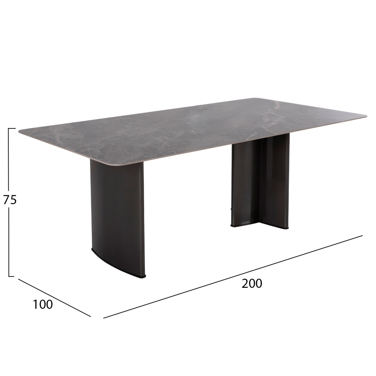 Τραπέζι: Η επιφάνεια είναι κεραμική, ενώ τα πόδια είναι μεταλλικά.