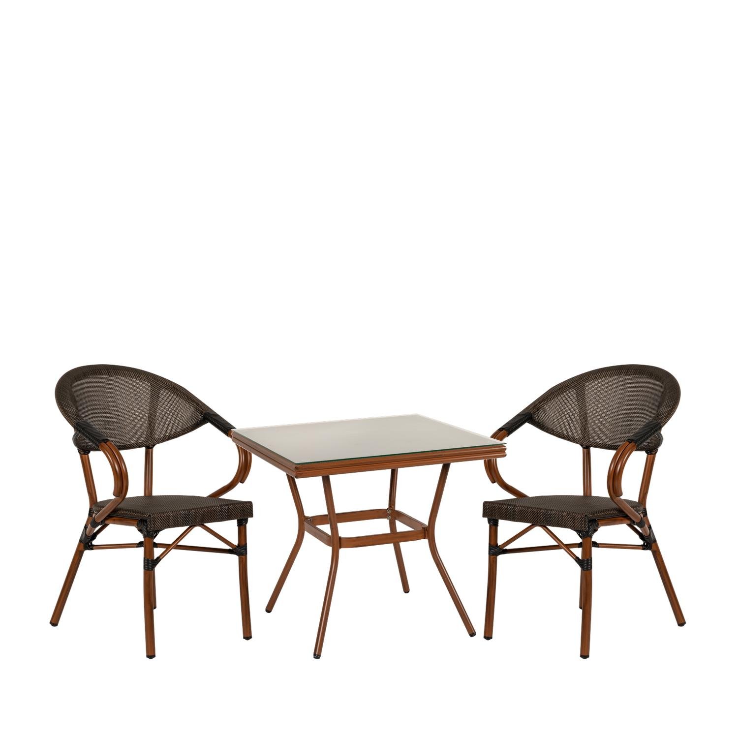 Σετ τραπεζαρία κήπου ANGOLA μπαμπού αλουμίνιο/γυαλί με 2 πολυθρόνες.