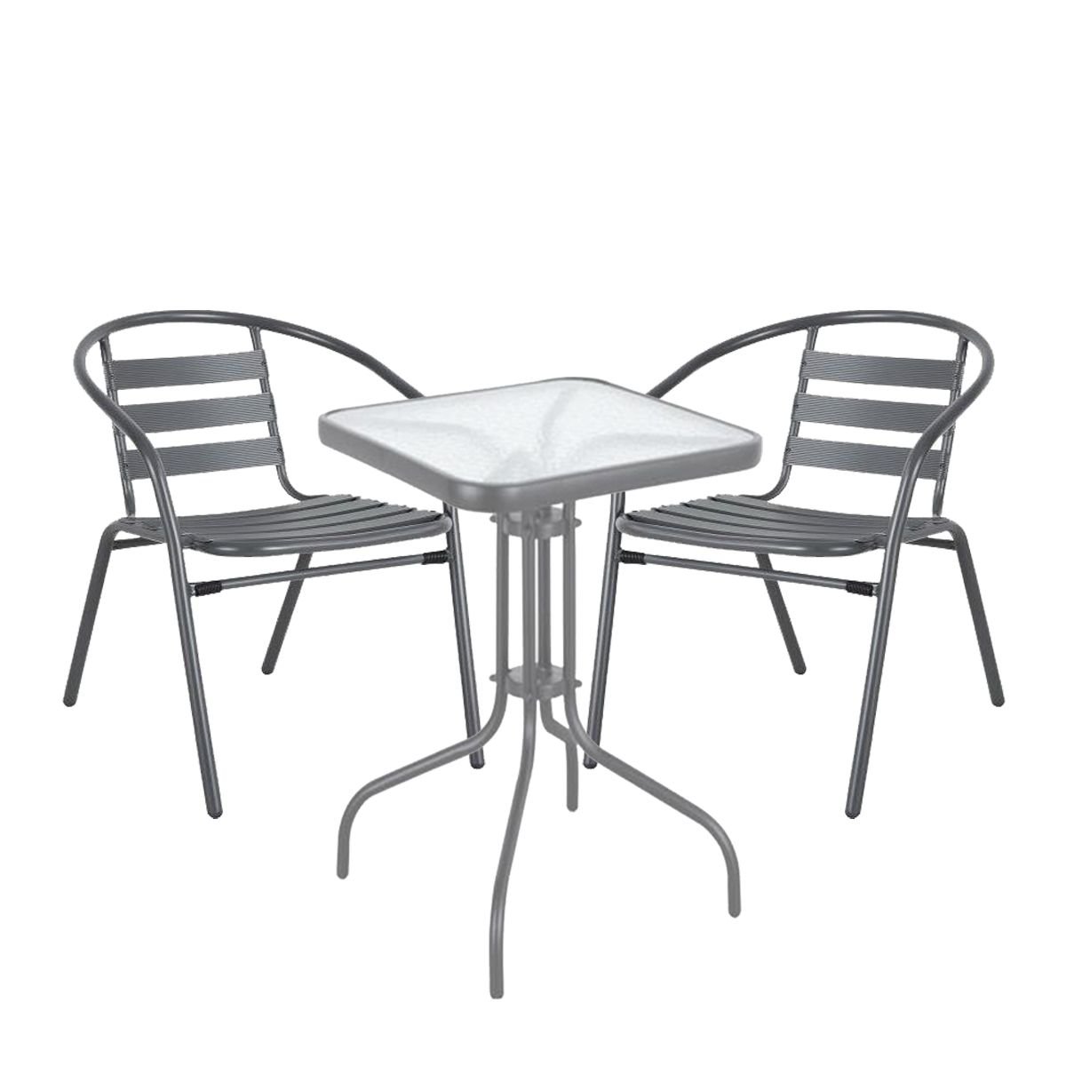 Σετ Τραπεζαρία Κήπου Mars Μέταλλο Μαύρο/Γκρι Με 2 Πολυθρόνες