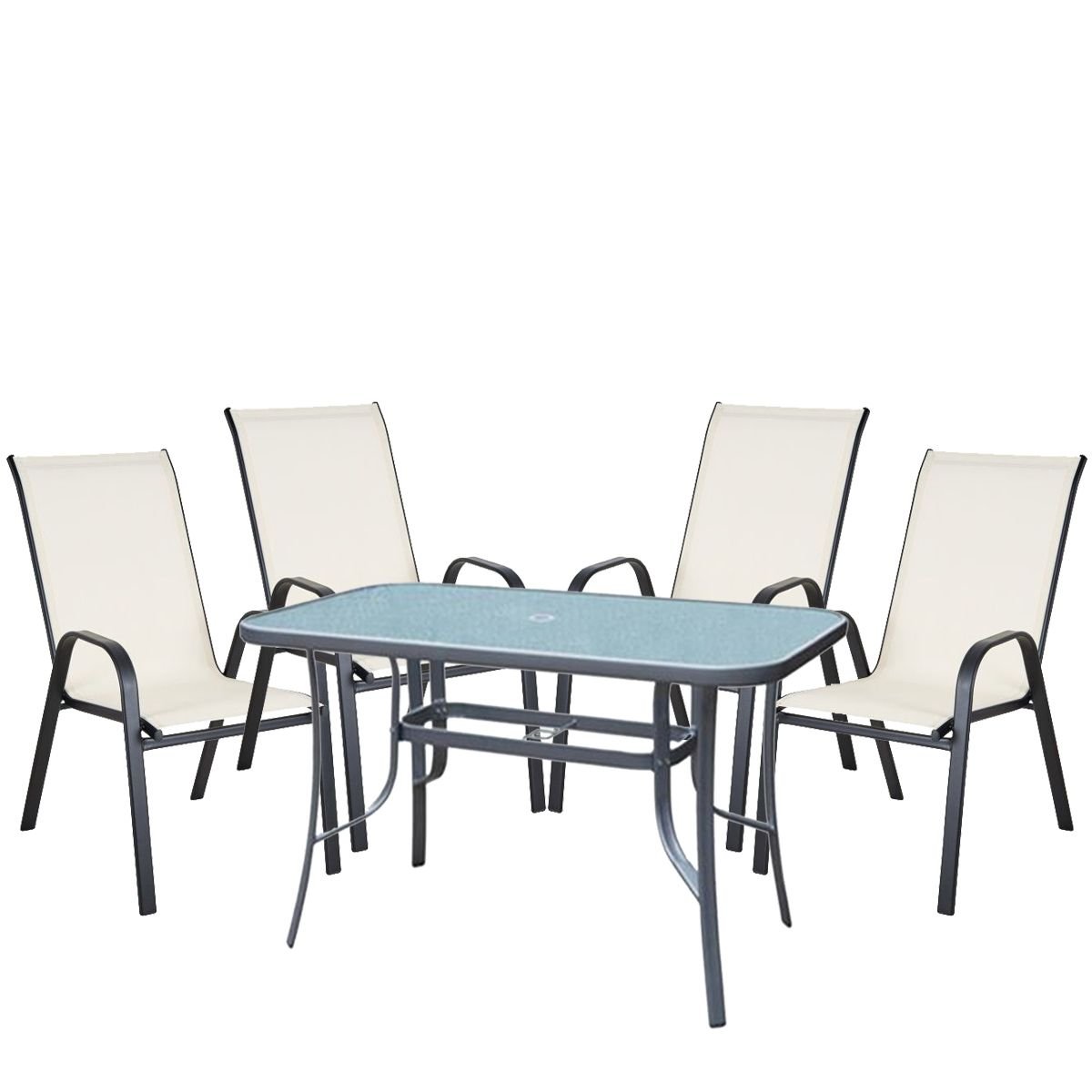 Σετ Τραπεζαρία Κήπου Sun Μέταλλο Κρεμ/Γκρι Με 4 Πολυθρόνες