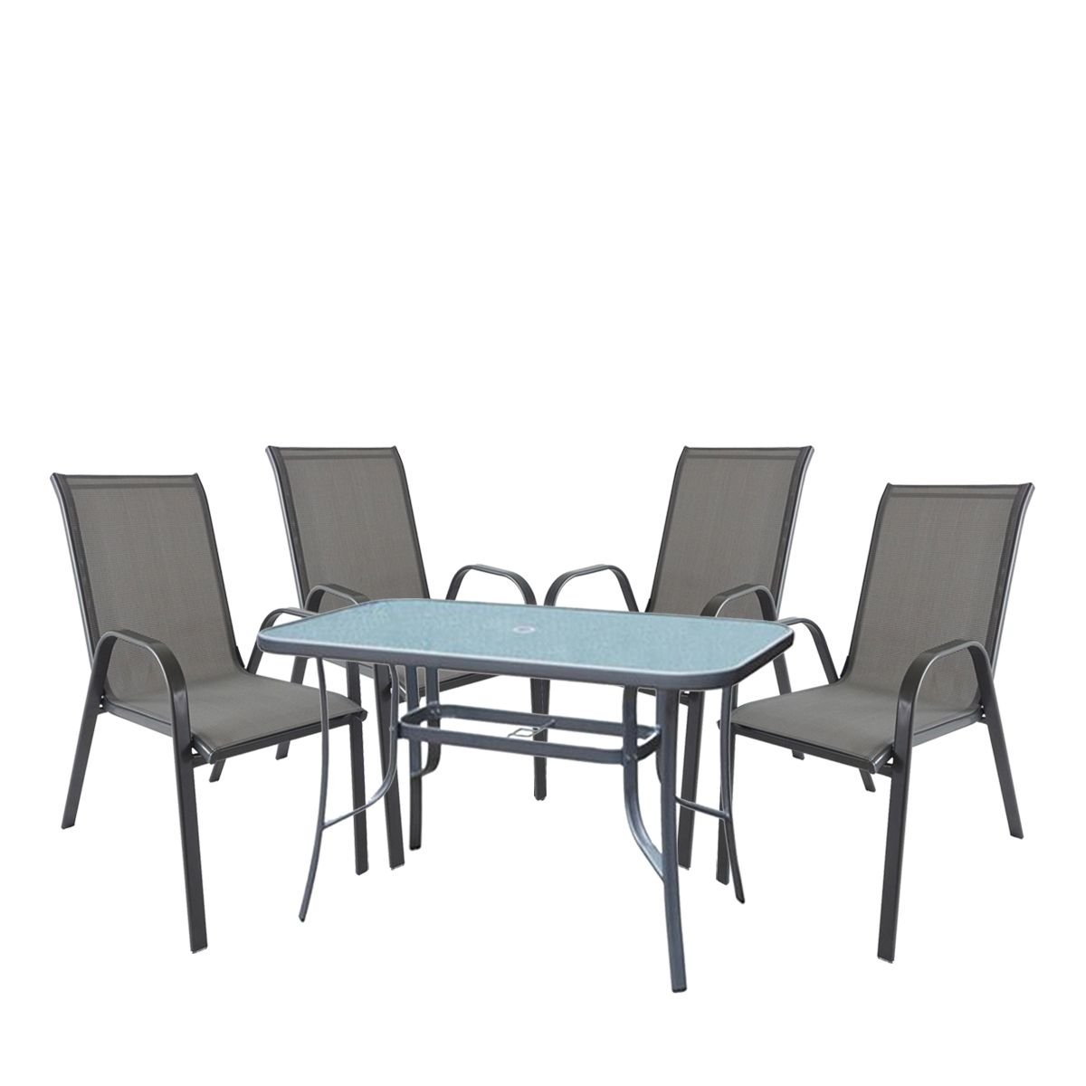 Σετ Τραπεζαρία Κήπου Sun Μέταλλο Γκρι Με 4 Πολυθρόνες