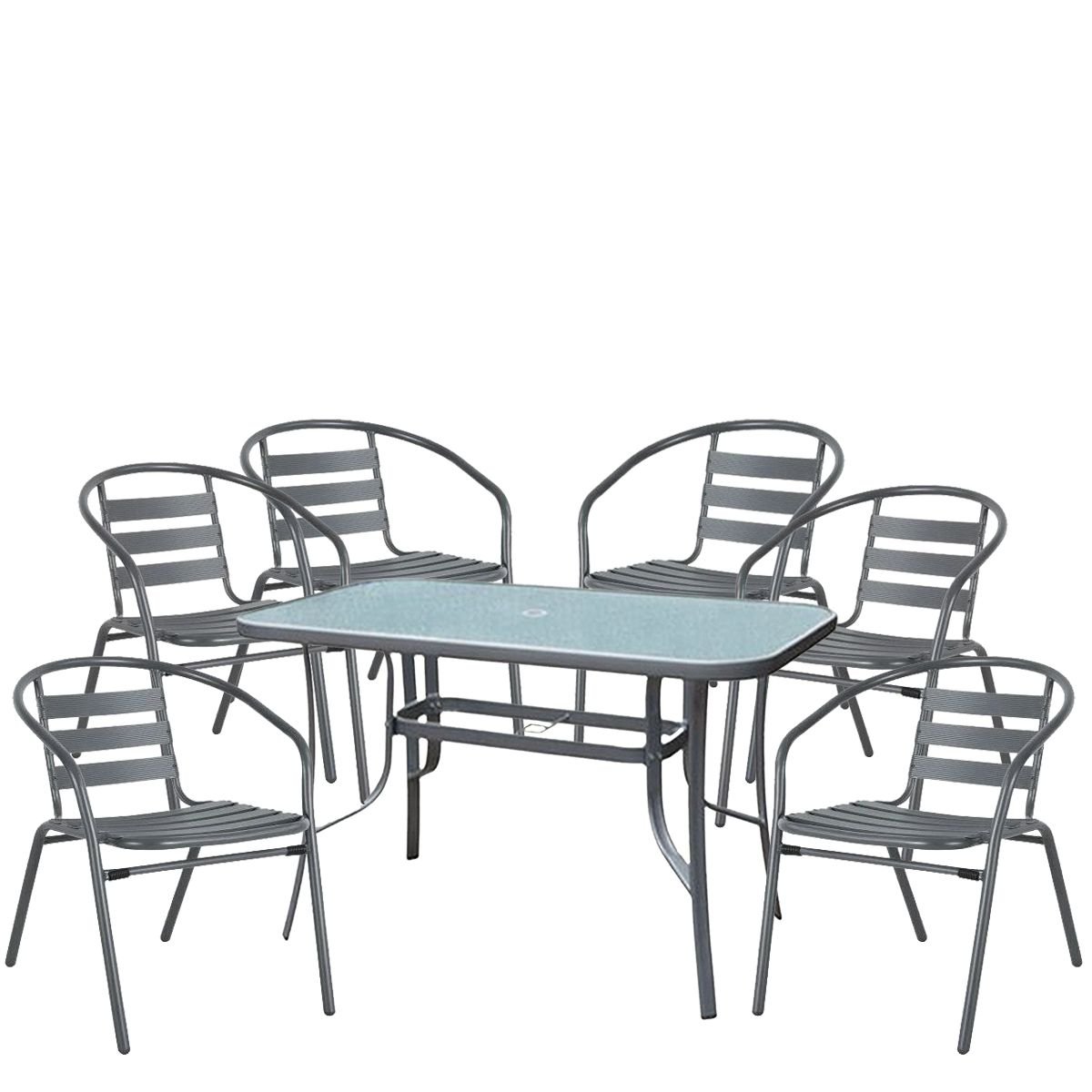 Σετ Τραπεζαρία Κήπου ArteLibre SUN Μέταλλο Γκρι Με 6 Πολυθρόνες 14990108