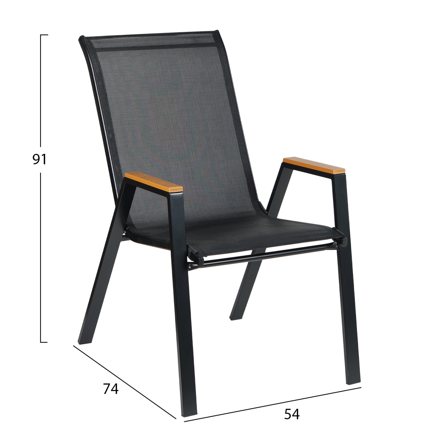 Αυτό το μικρό Σετ τραπεζαρίας εξωτερικού χώρου διαθέτει τετράγωνο τραπέζι με ΜΑΥΡΟ μεταλλικό σκελετό και γυάλινη (safety glass) θολή επιφάνεια, και 2 μεταλλικές πολυθρόνες με κάθισμα& πλάτη από textilene ύφασμα σε ΜΑΥΡΟ, με ξύλινη επένδυση στα μπράτσα.
