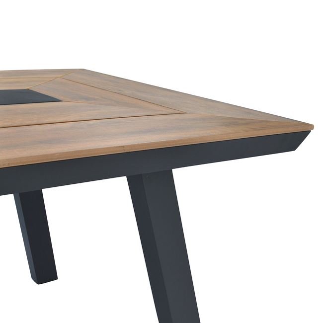 Συνδυάζεται αρμονικά με σκελετό από αλουμίνιο και έχει ως αποτέλεσμα ένα προσεγμένο τραπέζι