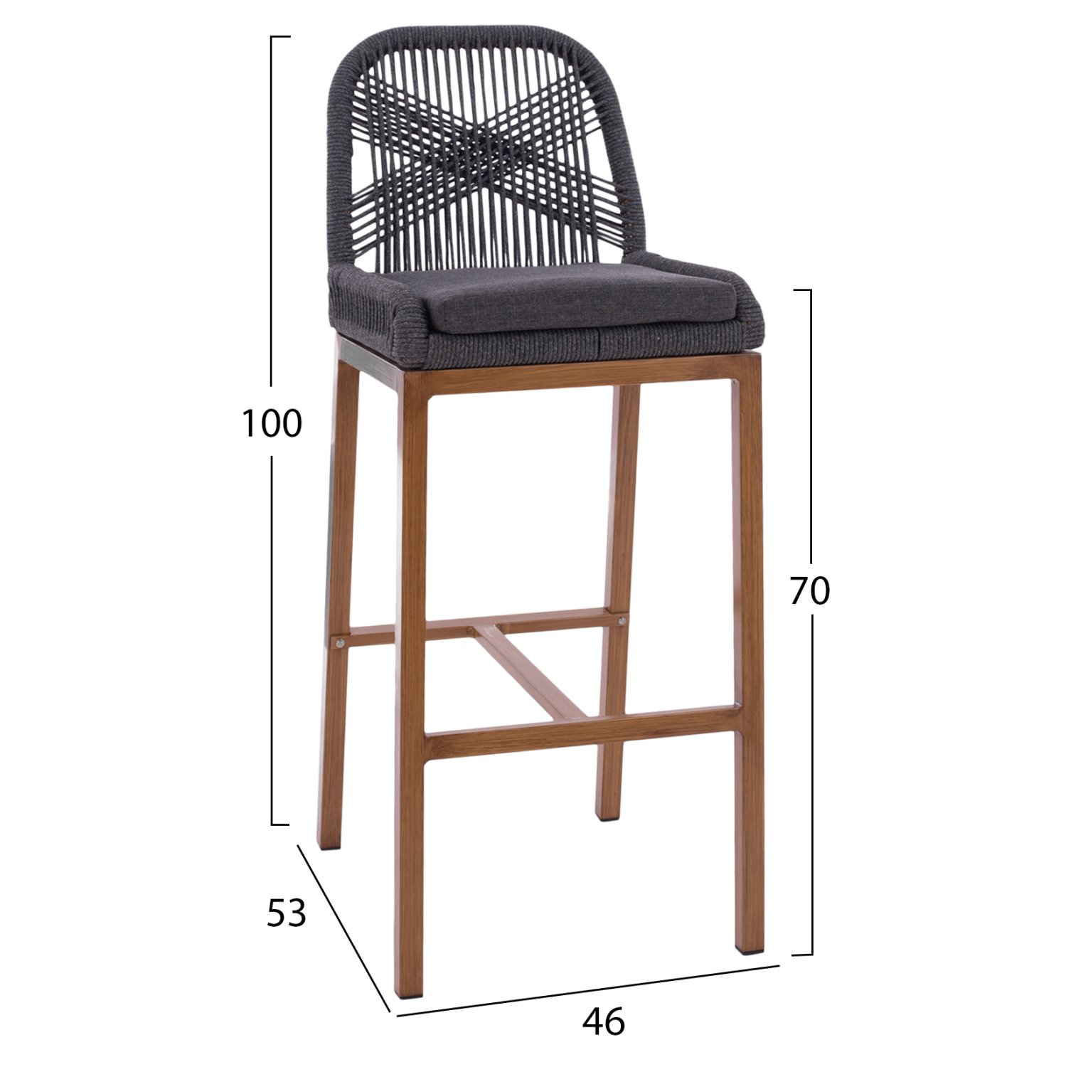 Η πλάτη του σκαμπό είναι επενδυμένη με σχοινί υψηλής ποιότητας.