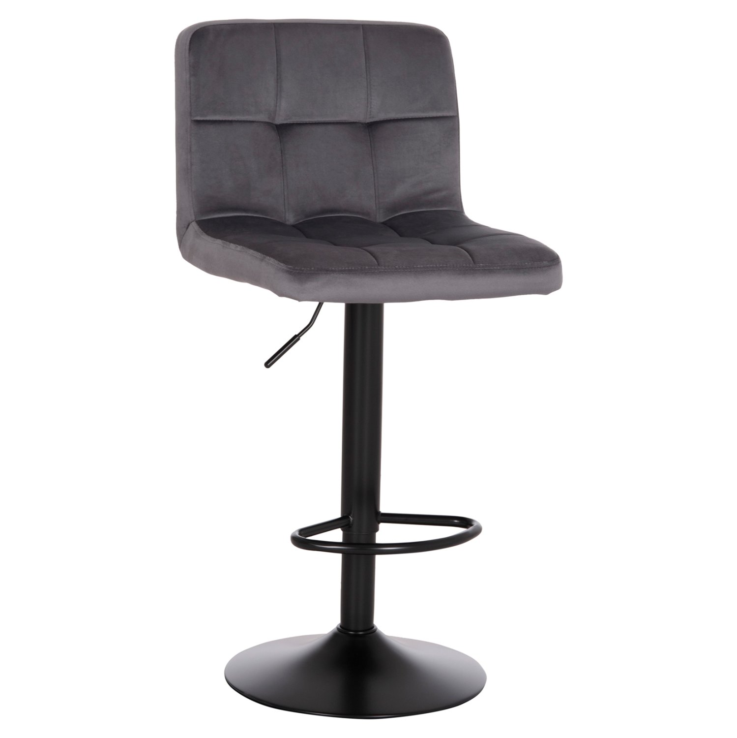 Το DIANA είναι ένα ΠΕΡΙΣΤΡΕΦΟΜΕΝΟ σκαμπό για μπαρ με ΓΚΡΙ βελούδινη επένδυση, που έχει όλα όσα θα θέλατε από ένα τέτοιο έπιπλο, μιας και είναι λιτό, πραγματικά ποιοτικό και κομψό στην όψη. Διαθέτει πλάτη και στηρίζεται σε μια μεταλλική κολώνα σε ΜΑΥΡΟ ΜΑΤ χρώμα με καλαίσθητο υποπόδιο. Το εξτρά χαρακτηριστικό που κάνει αυτό το σκαμπό να ξεχωρίζει είναι ότι διαθέτει και ρύθμιση ύψους καθίσματος (αμορτισέρ) μέσω ενός μοχλού που βρίσκεται κάτω από το κάθισμα. Μια πραγματικά πολυτελής πρόταση που θα αναβαθμίσει κάθε επαγγελματικό χώρο.