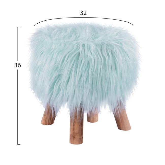 Σκαμπό BECK από γούνα σε τιρκουάζ απόχρωση και ξύλινα πόδια σε φυσικό χρώμα.