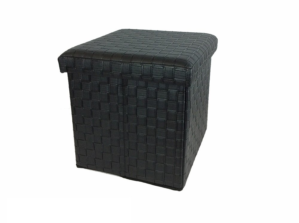 Σκαμπό Με Αποθηκευτικό Χώρο Μαύρο Δέρμα 38x38x38cm