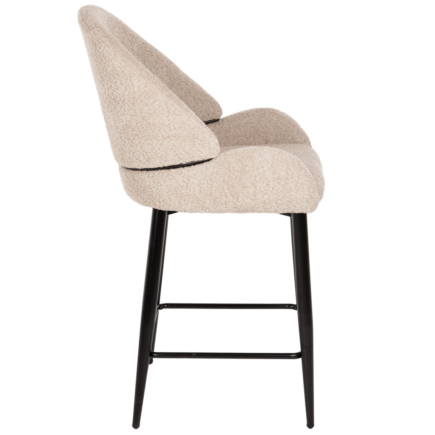 HM8586.02- -Επαγγελματικό σκαμπό bar σε ΕΚΡΟΥ χρώμα με ΜΑΥΡΑ μεταλλικά πόδια. Τα πόδια ενώνονται μεταξύ τους περίπου στη μέση τους με μια μεταλλική ράγα. Το σκαμπό είναι λιτό, ποιοτικό και κομψό στην όψη, και σίγουρα τραβάει τα βλέμματα με το ύφασμα μπουκλέ που είναι επενδυμένο. Είναι ψηλό με πλάτη η οποία αγκαλιάζει το σώμα ενώ και το κάθισμα έχει υπερυψωμένα πλαϊνά, πράγμα που επιτείνει τον ιδιαίτερο χαρακτήρα αυτού του σκαμπό.