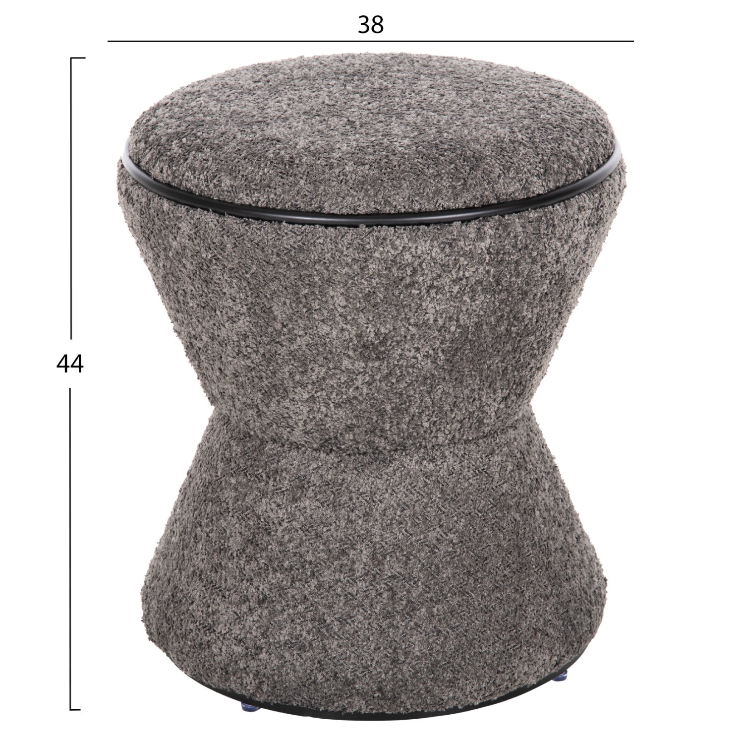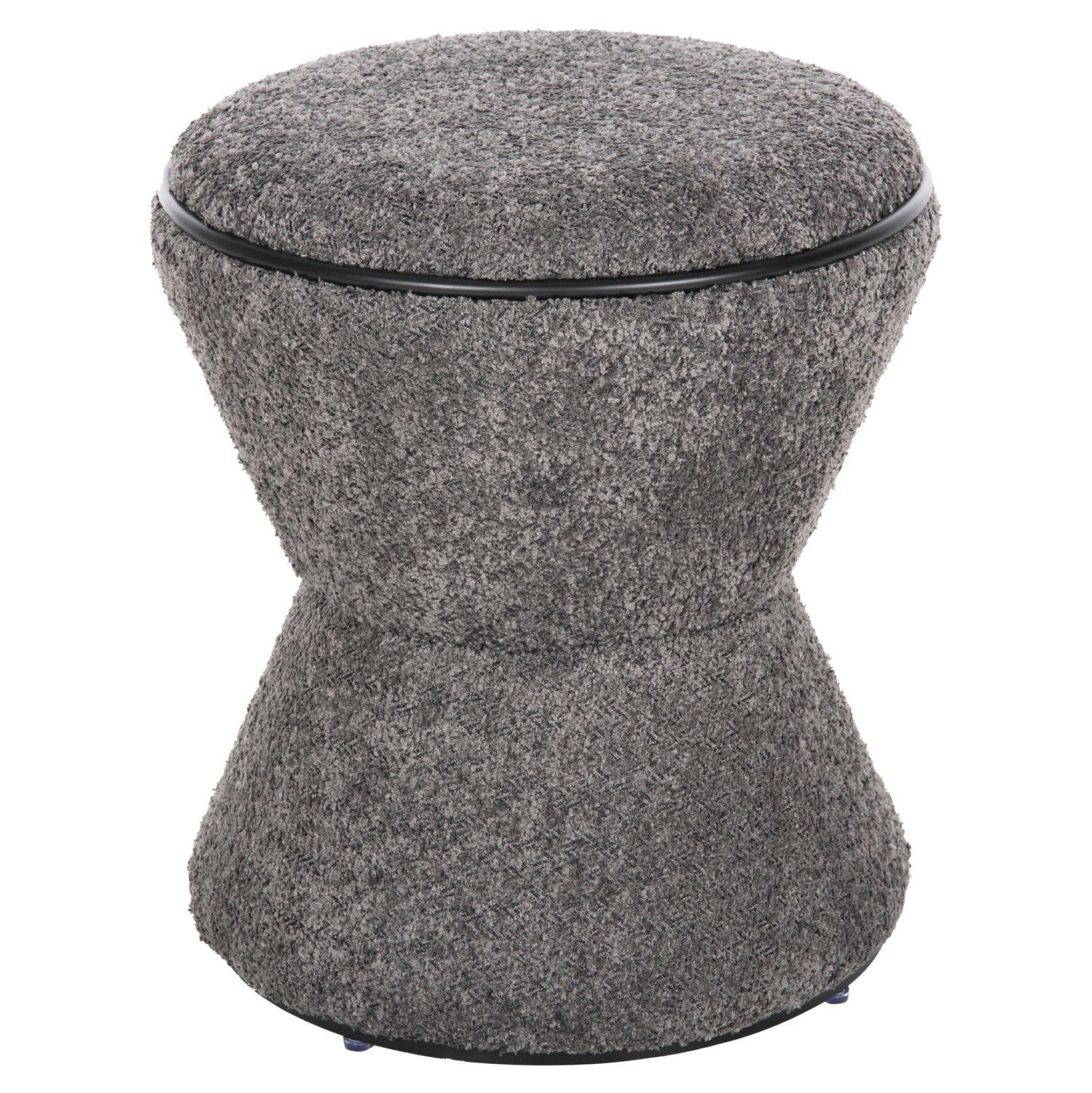 Σκαμπό κυλινδρικό LINNER επενδυμένο με ΓΚΡΙ μπουκλέ ζεστό ύφασμα και μαύρη λεπτομέρεια («δαχτυλίδι») στο κάθισμα και στην βάση.