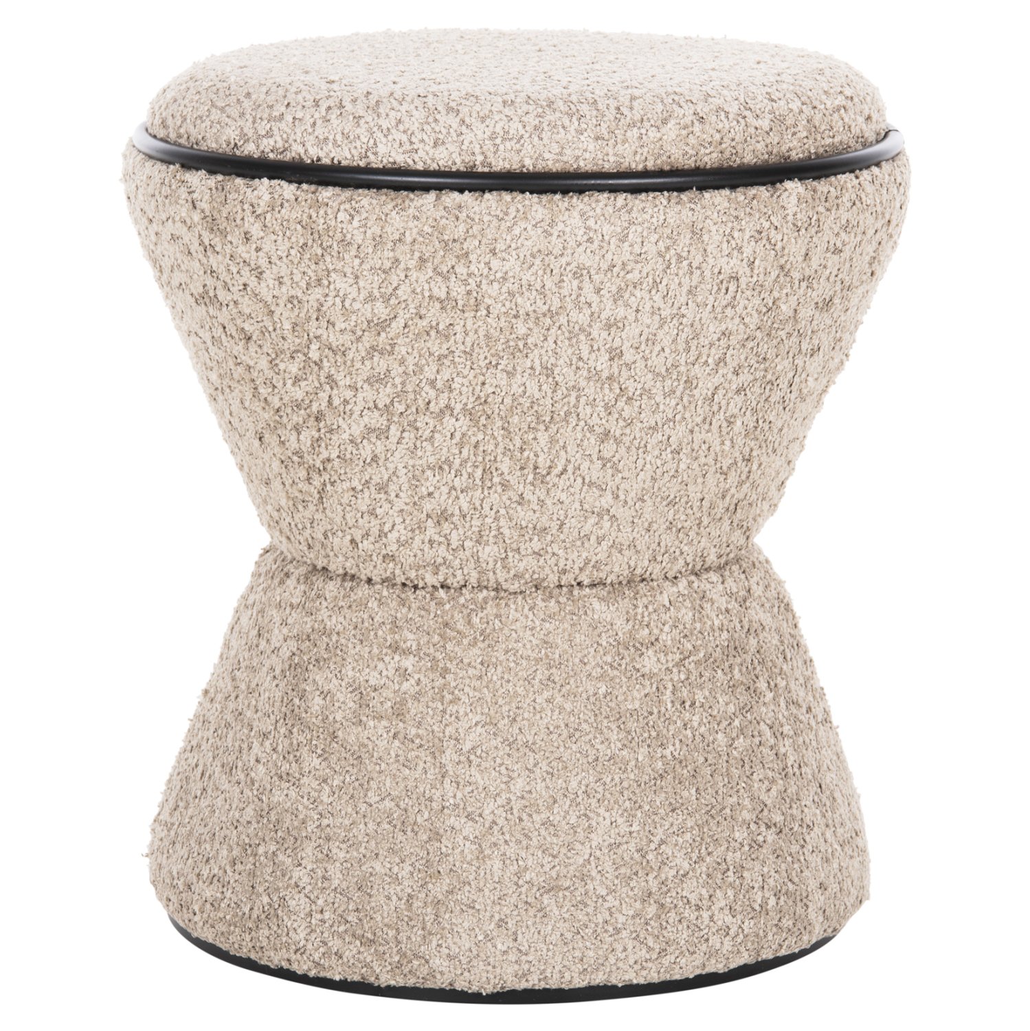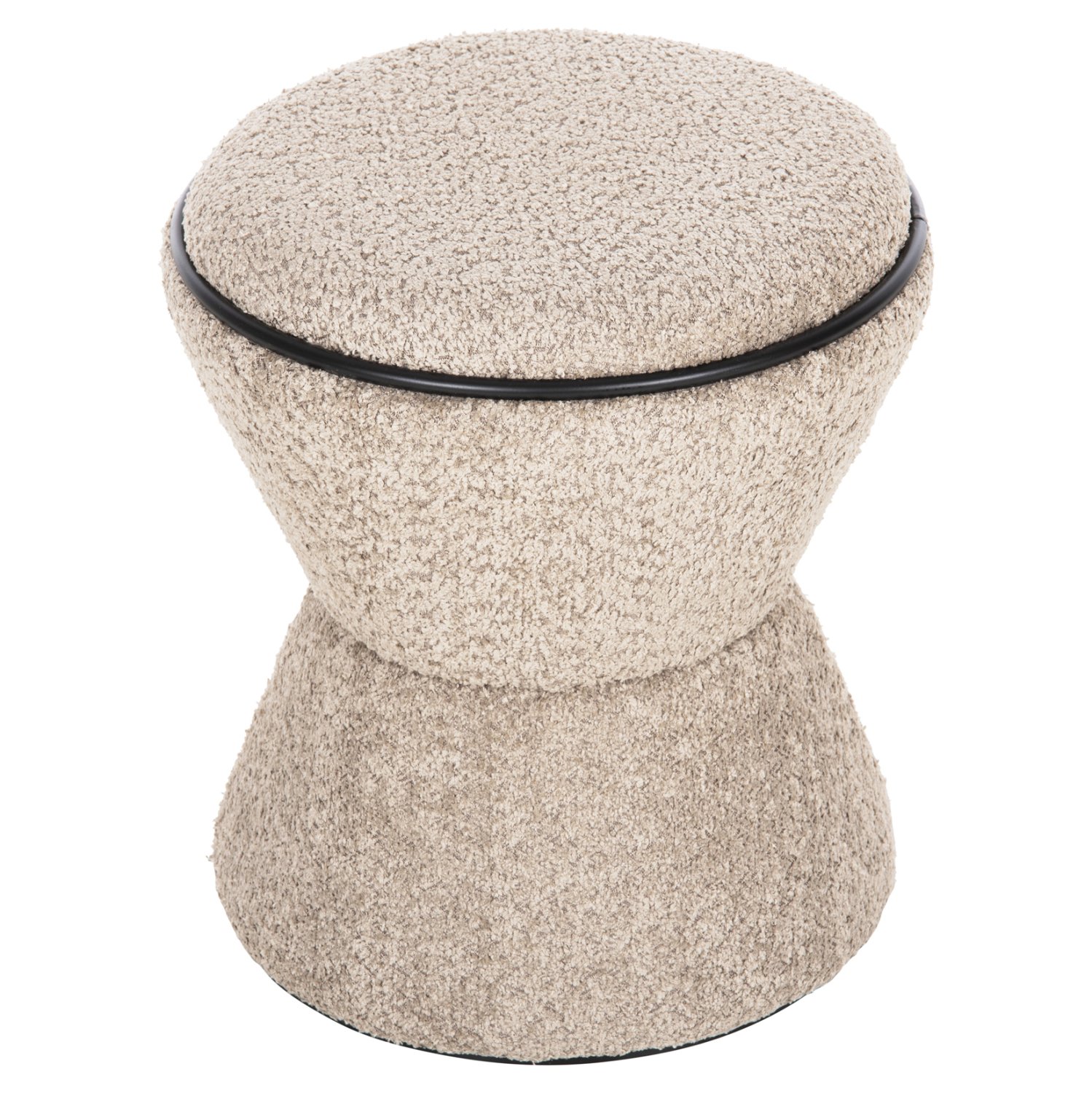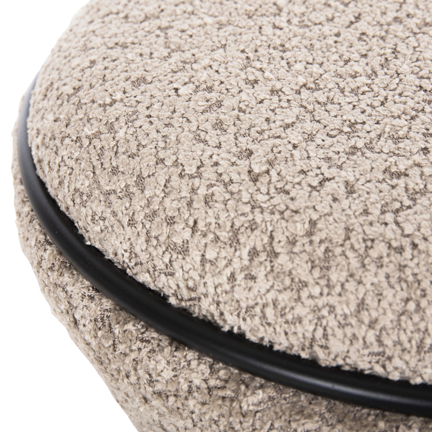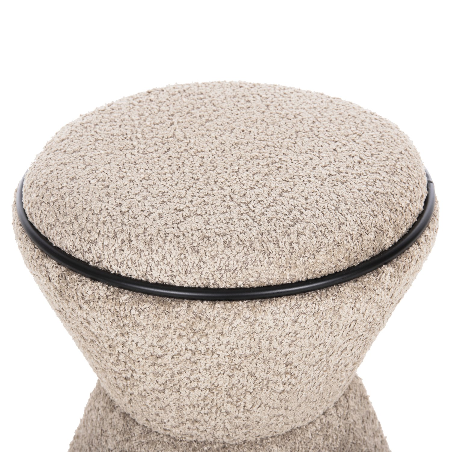 Σκαμπό κυλινδρικό LINNER επενδυμένο με ΜΠΕΖ μπουκλέ ζεστό ύφασμα και μαύρη λεπτομέρεια («δαχτυλίδι») στο κάθισμα και στην βάση.