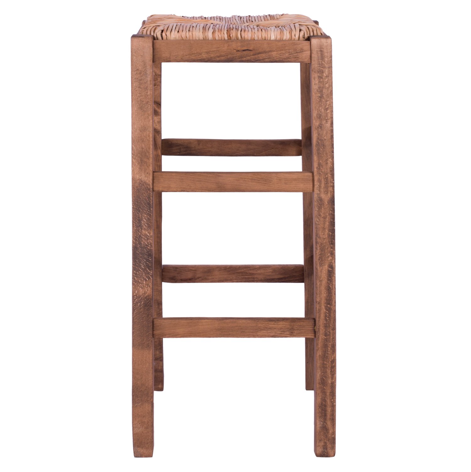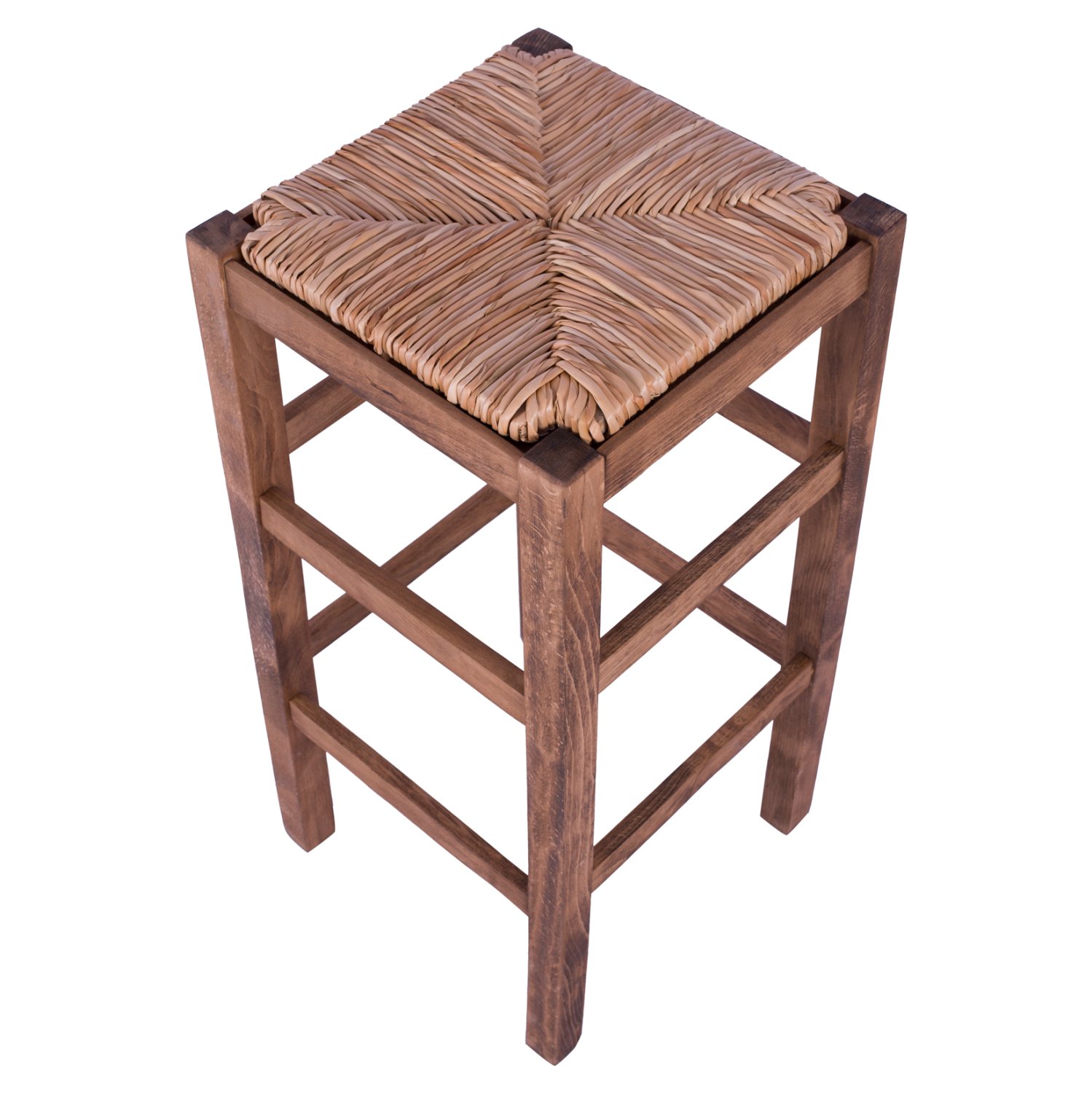 Σκαμπό καφενείου χωρίς πλάτη από μασίφ ξύλο φουρνιστής οξιάς εμποτισμού καρυδί και ψάθα.