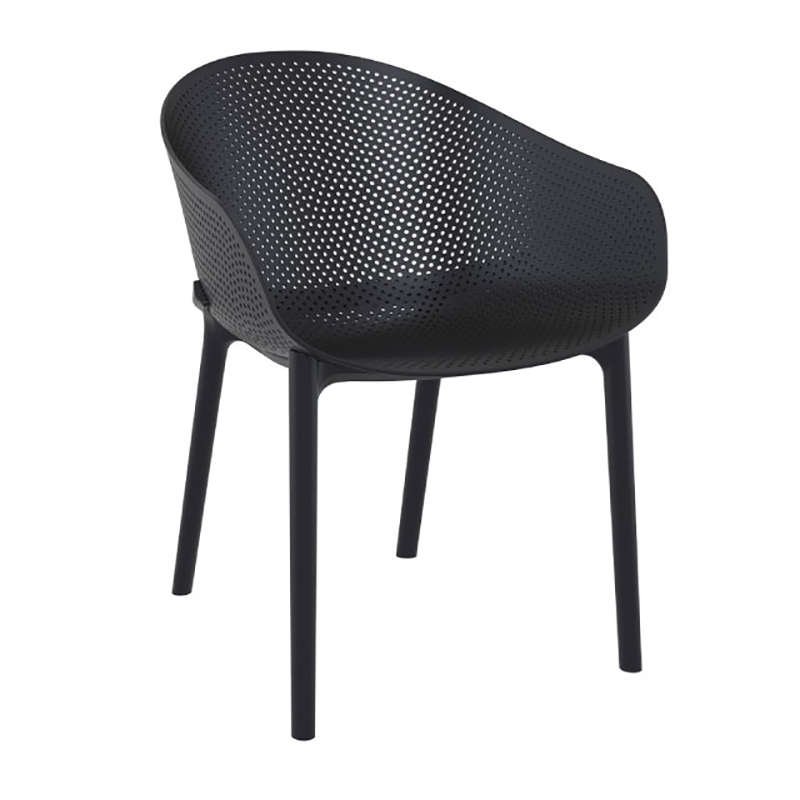 Sky πολυθρόνα του οίκου Siesta σε χρώμα black.Κατασκευασμένη από πολυπροπυλένιο ενισχυμένο με 20% fiber glass για απόλυτη αντοχή στο χρόνο.Κατάλληλη για εξωτερική και εσωτερική χρήση.Πιστοποιημένο προϊόν από τον Ιταλικό οίκο CATAS.