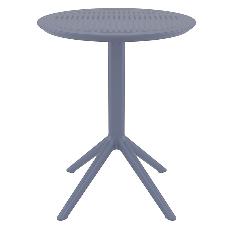 Sky τραπέζι πτυσσόμενο Φ60X74εκ. του οίκου Siesta σε χρώμα dark grey.Κατασκευασμένο από πολυπροπυλένιο.Στο κάτω μέρος της επιφάνειας διαθέτει κρυμμένα γατζάκια για εύκολη τοποθέτηση τσάντας.Διαθέτει UV protection για μη αλλοίωση των χρωμάτων.Κατάλληλο για εσωτερική και εξωτερική χρήση.