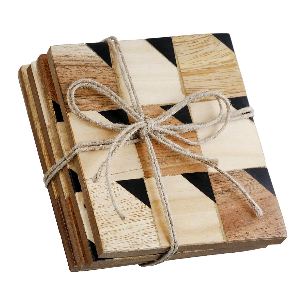 Ετικέτες: ArteLibre, Σετ 4 Τεμαχίων Σουβέρ Τετράγωνο Ξύλο Μάνγκο Μαύρο/Καφέ/Εκρού 10x10cm