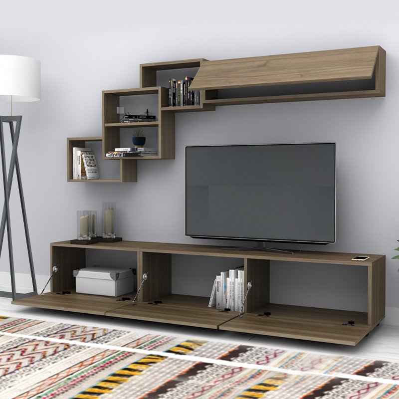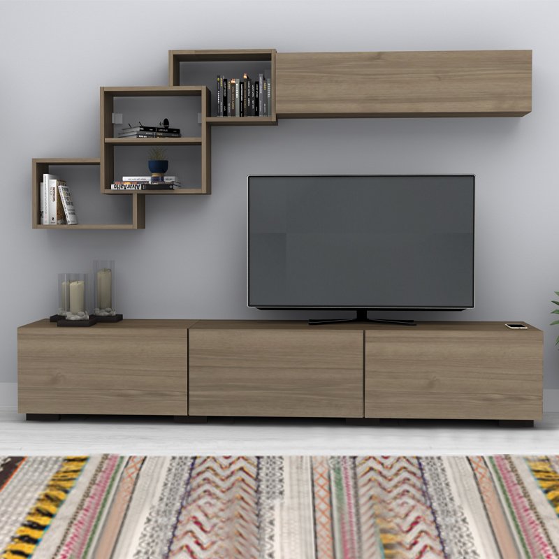 • Η σύνθεση αποτελείται από ένα έπιπλο τηλεόρασης, μία ραφιέρα τοίχου και ένα οριζόντιο μονόφυλλο ντουλάπι.