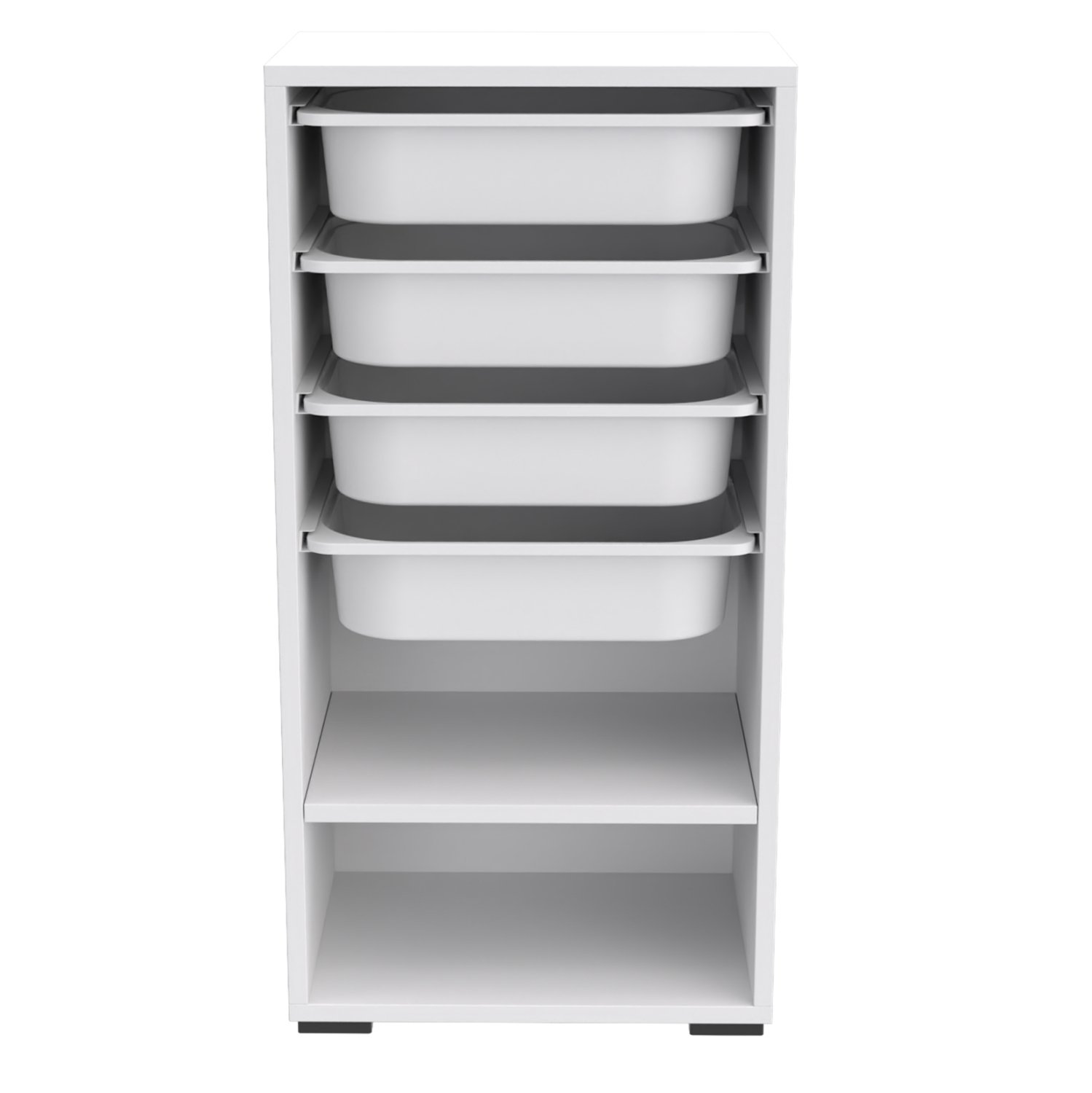Η SANI είναι μια συρταριέρα με πλαίσιο από μελαμίνη σε χρώμα ΛΕΥΚΟ, με 4 ΛΕΥΚΑ συρτάρια από πολυαιθυλένιο (πλαστικό) και ένα ανοιχτό ράφι στο κάτω μέρος. Ιδανική συρταριέρα για την καλύτερη οργάνωση του παιδικού δωματίου.