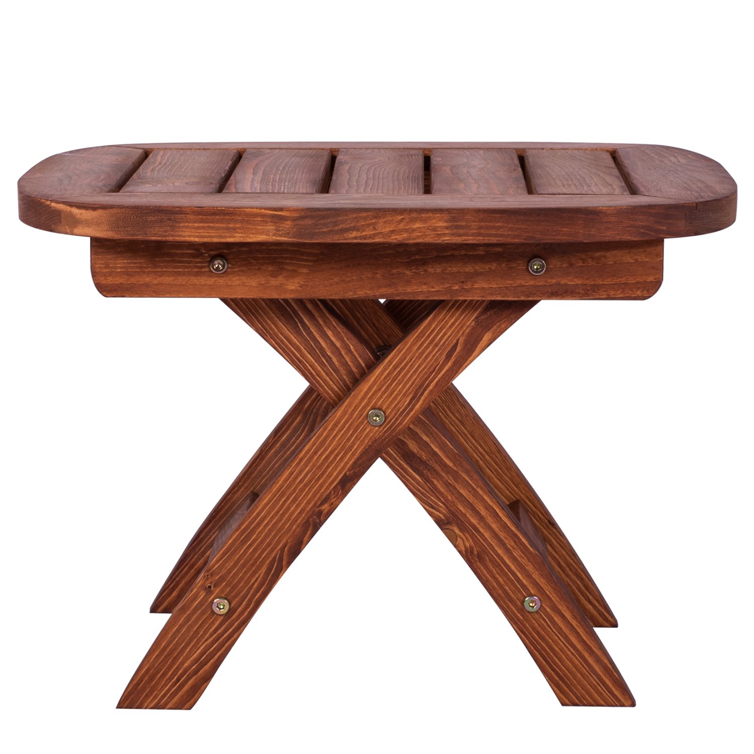 Τραπεζάκι παραλίας με ενισχυμένο σκελετό από ξύλο σε καρυδί απόχρωση.