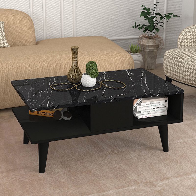Τραπεζάκι σαλονιού Andros Megapap χρώμα μαύρο – μαύρο εφέ μαρμάρου 90x54x39,6εκ.