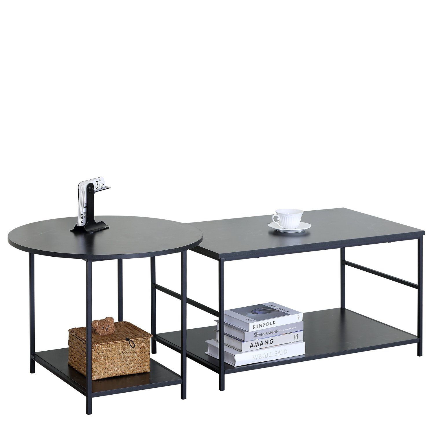 Το σετ τραπεζάκια σαλονιού ArteLibre ROWDEN συνδυάζει κομψότητα και λειτουργικότητα, προσθέτοντας μια μοντέρνα πινελιά στο σαλόνι σας. Κατασκευασμένα από μοριοσανίδα και μέταλλο, με μαύρο μαρμάρινο φινίρισμα, αυτά τα τραπεζάκια προσφέρουν ανθεκτικότητα και αισθητική που ξεχωρίζει. Το σετ περιλαμβάνει δύο τραπεζάκια διαφορετικών διαστάσεων, που μπορούν να τοποθετηθούν μαζί ή ξεχωριστά για ευελιξία στη διαρρύθμιση.