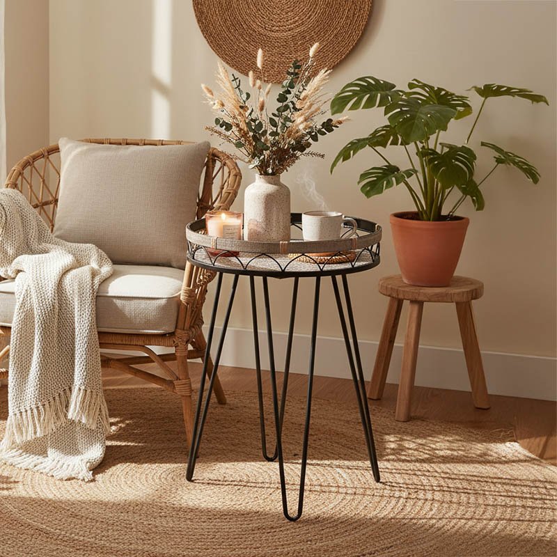 Ψάχνεις για ένα εκλεπτυσμένο έπιπλο που προσδίδει στυλ και λειτουργικότητα στον χώρο του σαλονιού σου; Η συνδυασμένη χρήση μετάλλου και ξύλου του Erzmo δημιουργεί ένα ενδιαφέρον αισθητικό αποτέλεσμα, συνδυάζοντας την αντοχή και τη σταθερότητα του μετάλλου με τη φυσική ζεστασιά και την ομορφιά του ξύλου. Το μαύρο-φυσικό χρώμα προσδίδει μια σύγχρονη αίσθηση στον χώρο και επιτρέπει στο τραπεζάκι να ενσωματωθεί άψογα σε διάφορα στυλ διακόσμησης. Το μέταλλο προσφέρει ανθεκτικότητα και ευελιξία, ενώ το ξύλο προσθέτει φυσική ομορφιά και ζεστασιά στο περιβάλλον.
