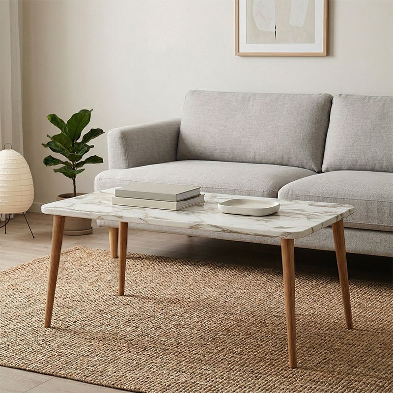 Τραπεζάκι σαλονιού Plane Megapap χρώμα λευκό εφέ μαρμάρου 90x55x41εκ.