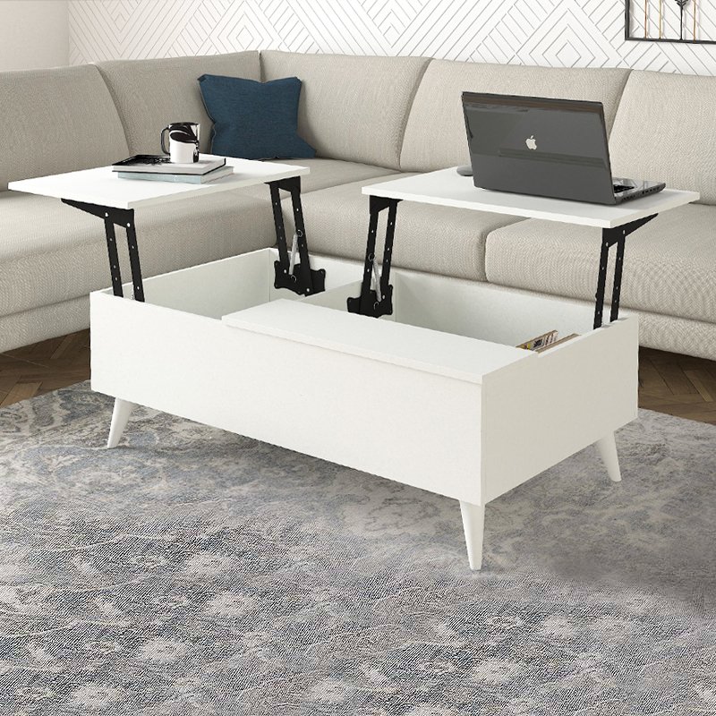 Το τραπεζάκι σαλονιού Roy διαθέτει μηχανισμό που επιτρέπει να σηκωθεί η επιφάνεια του σε θέση σερβιρίσματος για το φαγητό ή το laptop, δημιουργώντας χώρο για την αποθήκευση αντικειμένων στο εσωτερικό του.