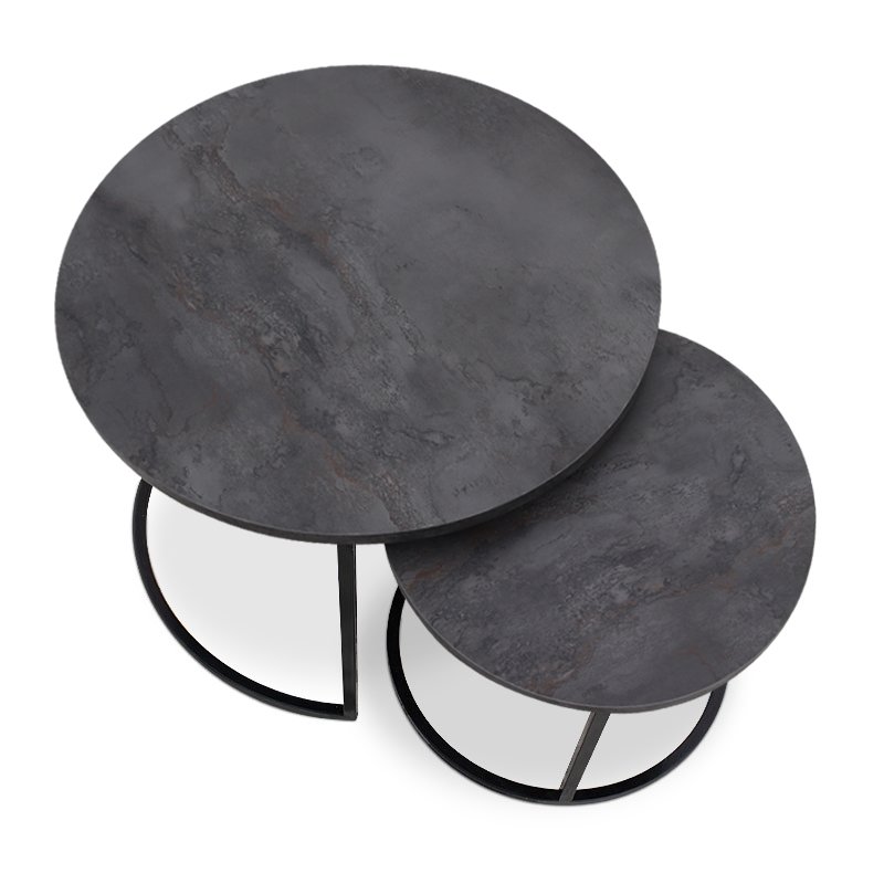 - Το σετ περιλαμβάνει δύο στρογγυλά τραπεζάκια, ένα μικρότερο κι ένα μεγαλύτερο.