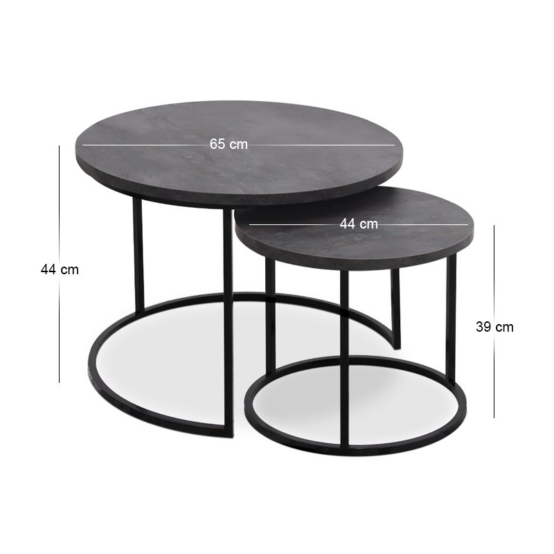 Τραπεζάκι σαλονιού σετ 2 τμχ Gary Megapap Mdf – μεταλλικό χρώμα σκούρο γκρι σκυροδέματος 65x65x44εκ.
